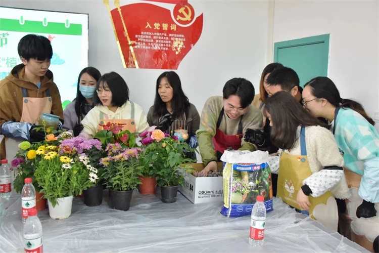 活动现场,老师与同学们干劲十足,分工协作,从松土、放入绿植、培土、整平、到浇水,每一个环节都做到认真细致,用双手为人文播种绿意。种下一棵树苗就是播种一份希望,体现了人文学院“从种树到育人的转变”,也让师生们更加意识到植树造林的重要性,树立保护环境的责任意识。