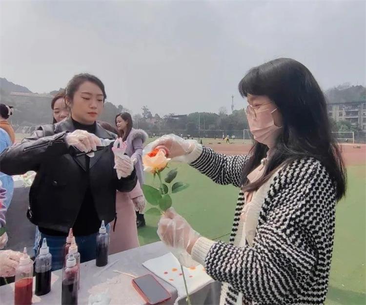 人间最美三月天,春花烂漫展新颜。在此乍暖还寒时日,我们迎来了第113个“三八国际劳动妇女节”。为展现新时代女性的风貌,3月8日中午12:30,人文学院于田径场开展“布布生花,人文芳华”扎染活动,体验非遗文化,感受扎染魅力,同时向全院女同胞送出节日祝福,致敬新时代的“半边天”。人文学院党总支副书记龚艺、人文学院辅导员代表以及教研室女教职工代表参与其中。