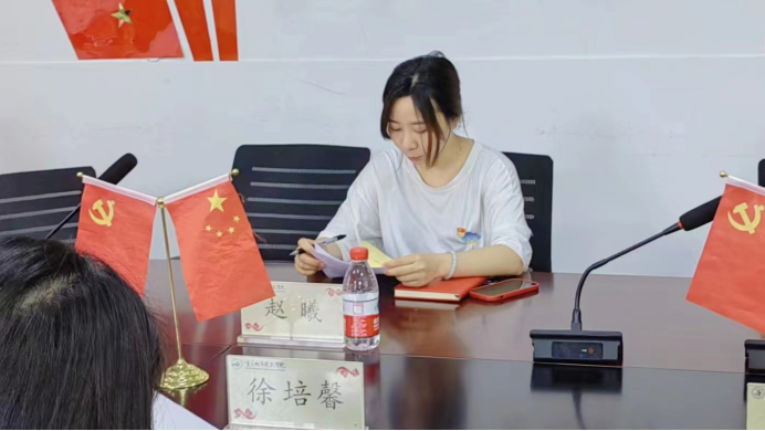 最后,学生第三支部宣传委员赵欣悦对本次学习内容分享学习感悟,认识到学习党的二十大精神是培养党性修养的重要途径,要筑牢信仰之基、补足精神之钙、把稳思想之舵.