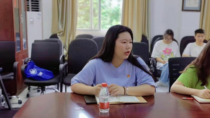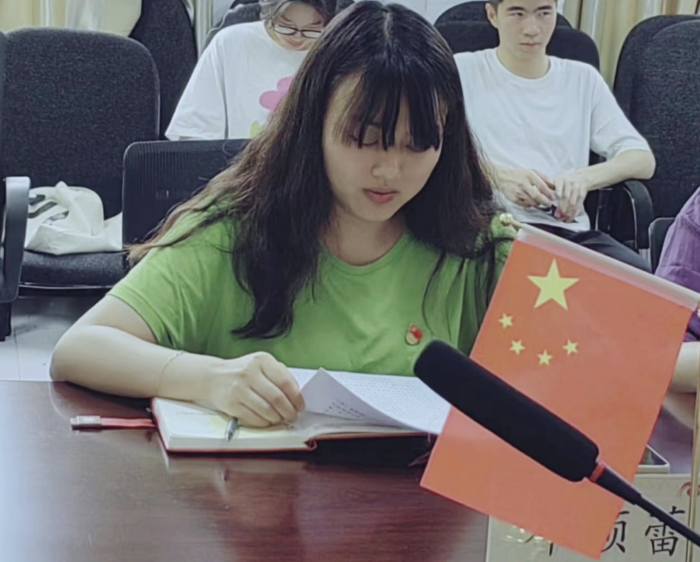 学生第一党支部组织委员毛鳗翎领学《夯实全面建设社会主义现代化国家基础性战略支持》,她提到为师者,为党育人,为国育才。学院各党员需落实立德树人根本任务,筑牢全面建设社会主义现代化国家的基础性战略性支持。