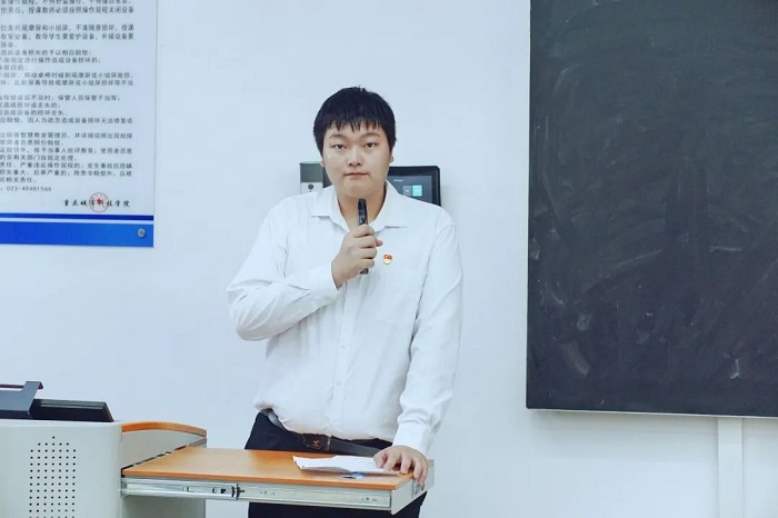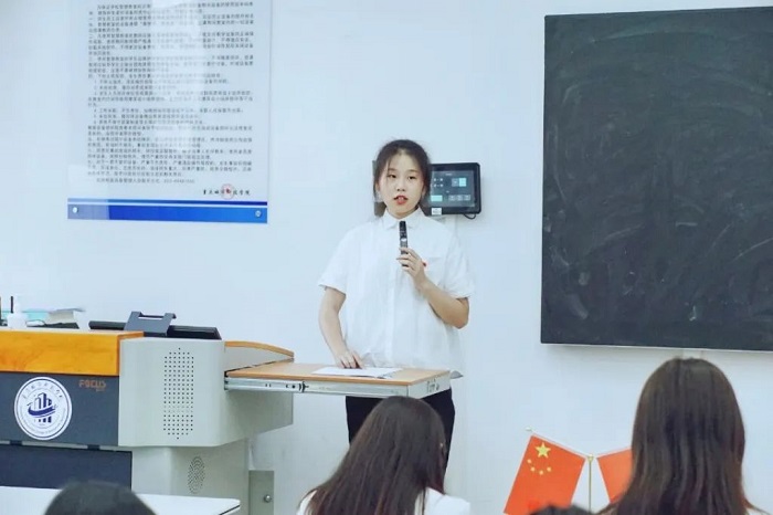 第二届党建学生骨干代表伍先雯为此次换届进行发言,讲述其在人文党建工作站的收获与成长,提出新一届党建人要在崇实、务实、求实、做实上下功夫,守初心、担使命。