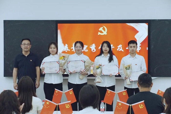 人文学院党总支副书记纪振鹏为第二届党建工作站优秀骨干颁发奖状,并合影留念。