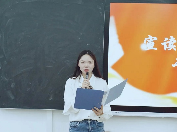 党总支组织委员田甜宣读人文学院党建工作站干事名单并对此次大会进行总结讲话,田甜老师表达对党建工作者的肯定,她希望新一届的工作者们要学思想、见行动,紧紧围绕新时代新征程党的中心任务,真抓实干、务求实效,聚焦问题、知难而进,继续书写好人文学院党建的未来。