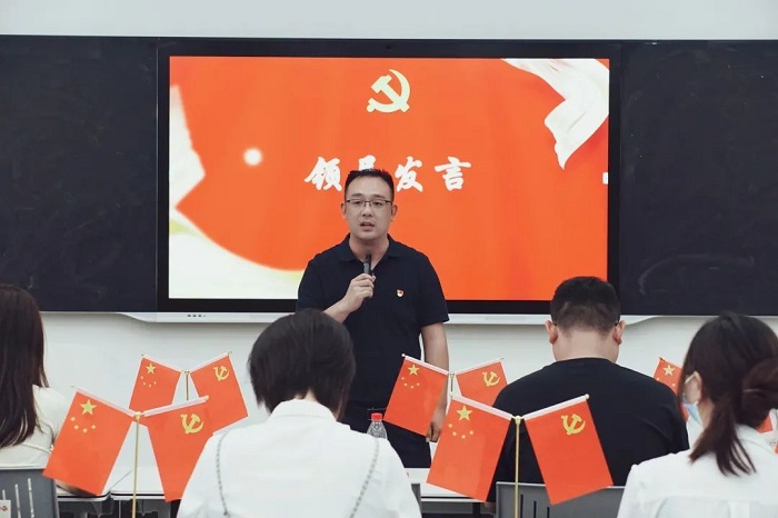 人文学院党总支副书记纪振鹏发表讲话。他讲到,党建工作站要提高站位,将干事思想与文件要求高度统一,把心思用在干好本职工作上,把智慧用在推动学院发展上。其次,要压实责任担当,学院工作者要挑起担子,尽职尽责、兢兢业业,扎实推进学院党建工作落实落细。最后,要提升业务技能,养成良好行为习惯、工作习惯、提高执行标准。