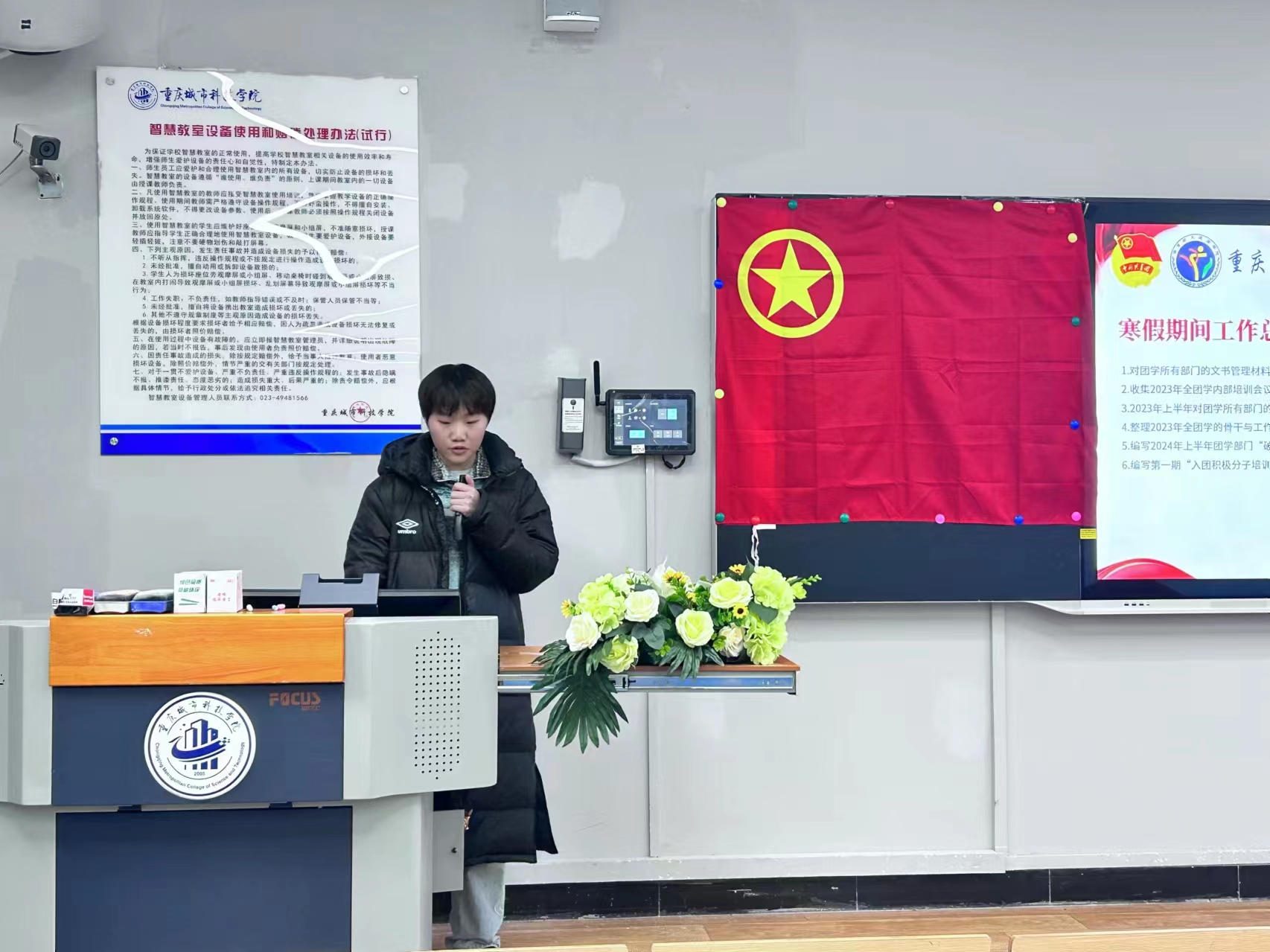 团总支书记处骨干杨澍针对团学组织建设与行政管理两个方面进行总结。既分析了团学现存问题,也梳理了团学行政管理框架,并提出以下几点要求:一是希望团学成员们勇于担当作为,在履职尽责上下功夫,积极向组织靠拢、向先进看齐。二是加强行政管理,各部门确保沟通畅通无阻。在调动多方资源的同时,提高工作效率,并对各项工作进行有效管理与监督。团总支书记处骨干曾祥敏就制度建设与团务工作进行汇报。对寒假期间组织部与纪检部的工作内容进行了总结,对本学期的工作计划进行了详细的部署。她强调,各部门应夯实团学考核条例,做到“有理可依,有据可寻”。同时,加强团总支组织部对各团支部的指导、监督与考核,坚持从严治团、从严治会。