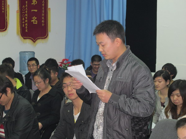 2011年11月28日,土木工程学院第二党支部召开关于接收新党员评议会议,第二支部书记马健同志、支部宣传委员龚艺同志及全体正式党员参加了会议。