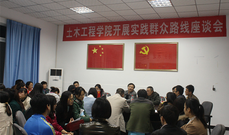 11月19日晚7:30,土木工程学院在土木山庄会议室举行了深入开展党的群众路线教育实践活动座谈会,土木工程学院院长李平诗、党总支书记何湘丽、第二党支部书记林立、团总支书记以及部分教师、辅导员参加本次座谈会。