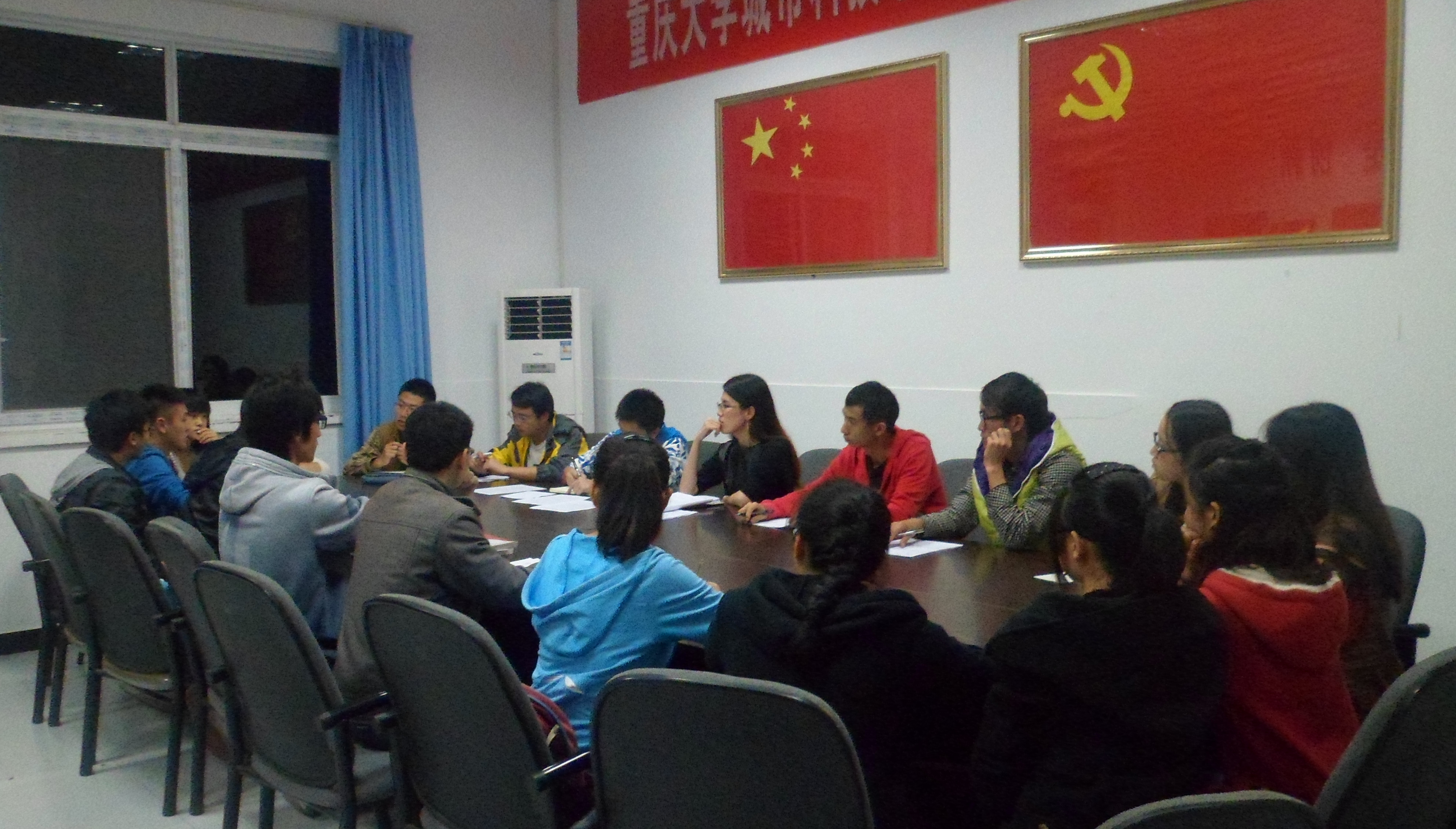 2013年10月23日22日晚上7点30分,第一届先进成图技术与产品信息建模创新竞赛筹备会议在土木山庄会议室举行。土木工程学院辅导员、制图协会指导老师袁丁,制图协会各学生干部以及土木工程学院学生会学习部部长等参加会议。会议由袁丁老师主持。