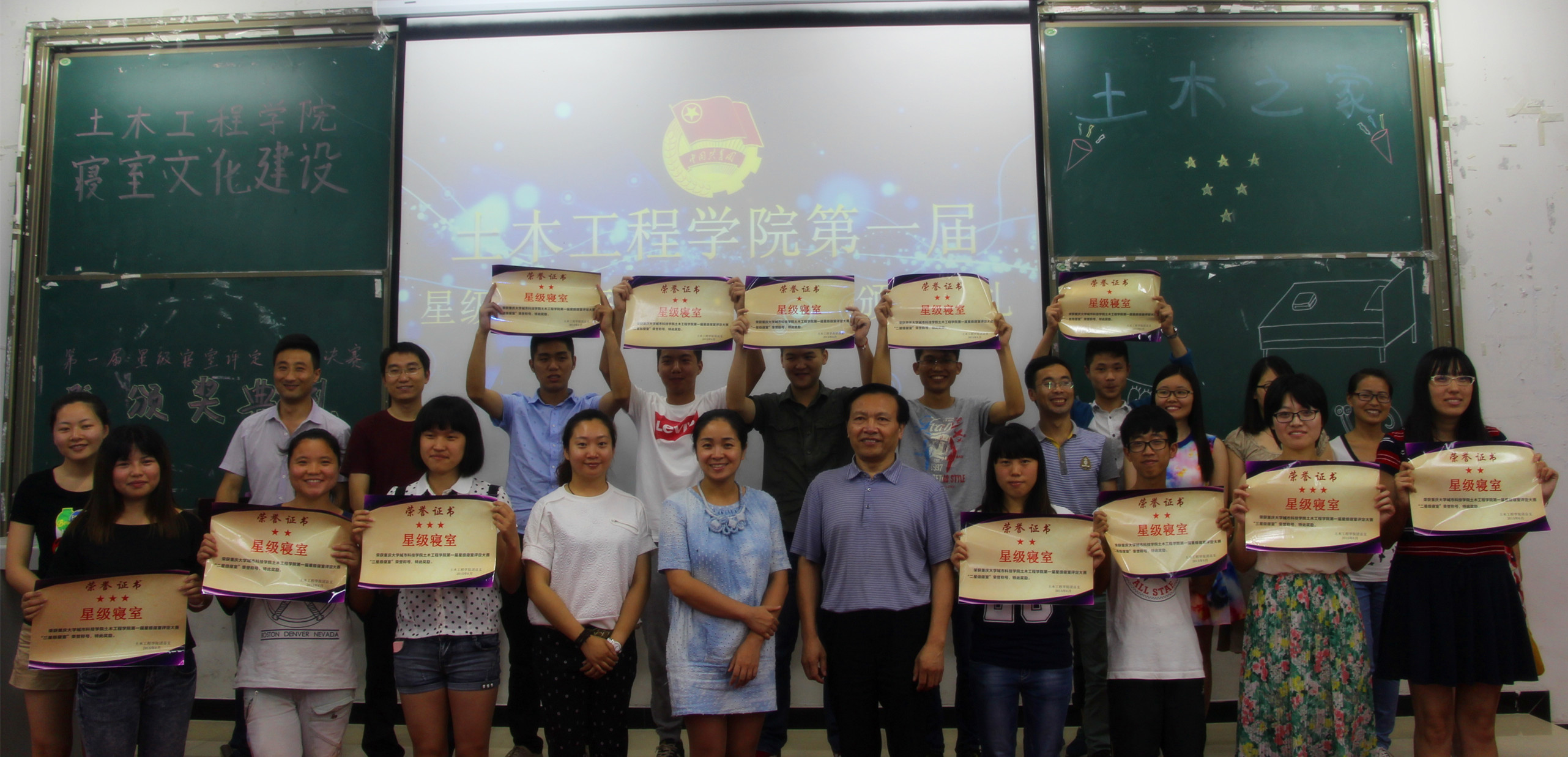 为了引导学生关注宿舍文化的建设,营造温馨的宿舍环境,增进室友之间的情谊。土木工程学院2015年6月2日12时30分在六教111举行了第一届星级寝室评定大赛暨颁奖典礼。土木工程学院院长李平诗、土木工程学院党总支书记何湘丽、土木工程学院第二党支部书记林立、土木工程学院团总支书记龚艺及土木学院各辅导员,校团委、校学生会及各二级学院代表出席了本次活动。本次活动由王晶主持。