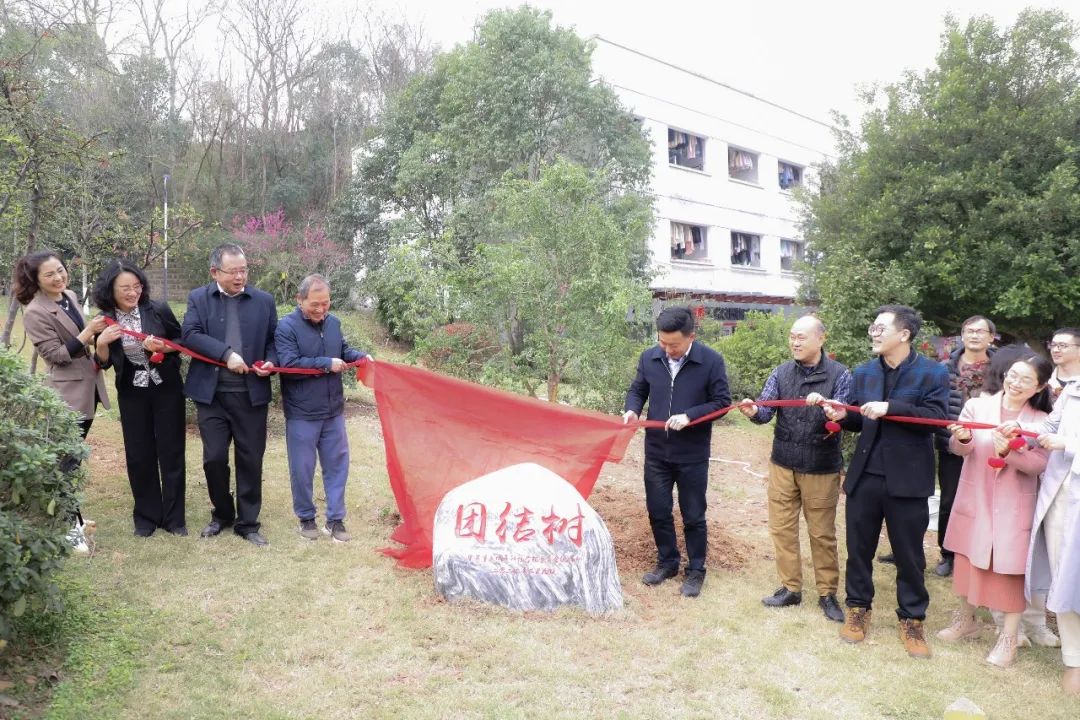 “团结树”浇水培土以后,刘学民理事长、黄宗明校长、王银峰书记和统一战线人士一起为“团结树”揭幕。揭幕仪式结束后,校领导们和统一战线人士在“团结树”旁合影留念,共同留下了团结奋进的美好回忆。