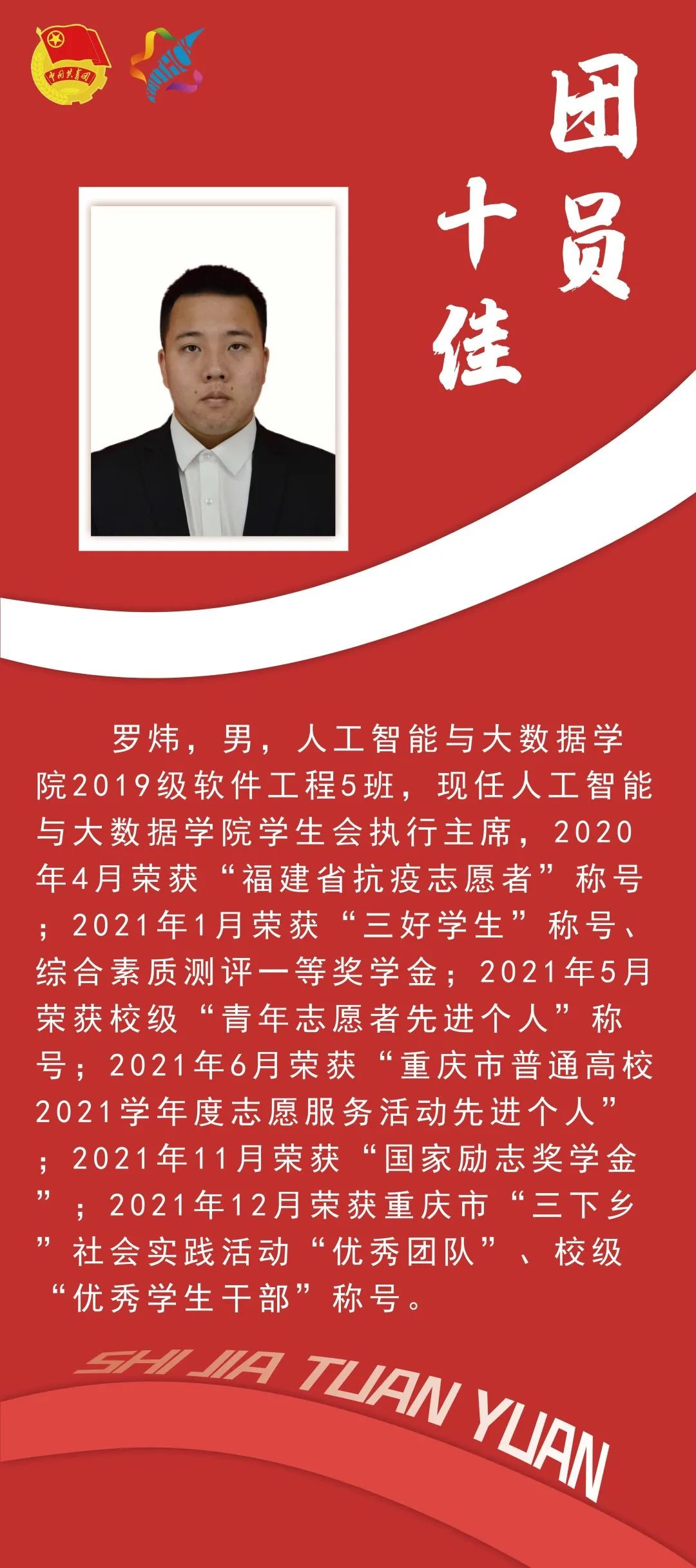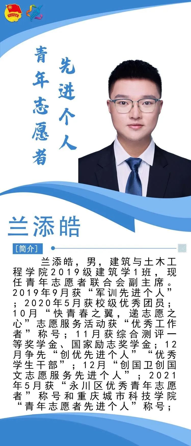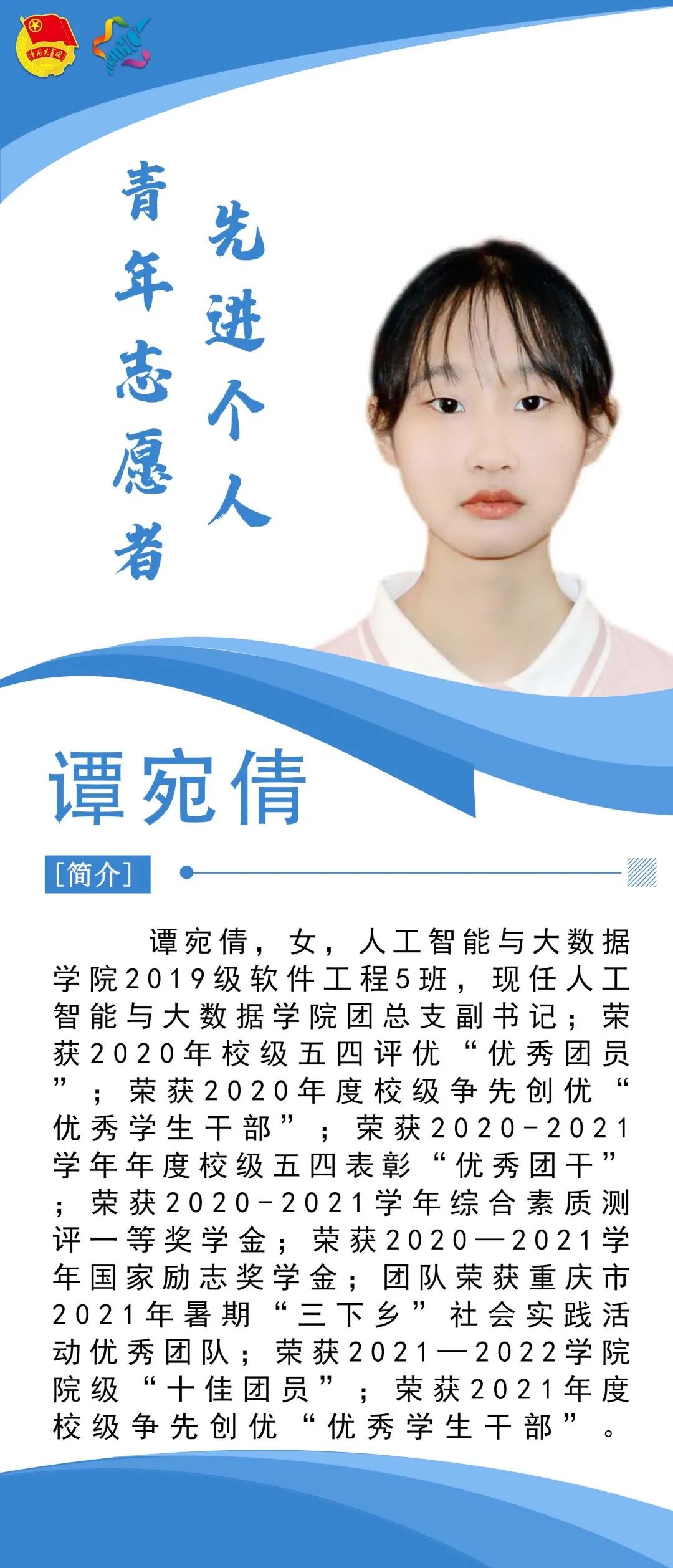 时代各有不同,青春一脉相承,奋斗是青春最亮丽的底色,行动是青年最有效的磨砺,青年如初春,如朝日,如百卉之萌动,共青团始终同根同脉连着党、耿耿红心向着党、坚定不移跟着党奋斗。在过去的2021-2022学年中,我校广大团员青年坚决拥护党的基本路线、方针、政策,学习党的科学理论特别是习近平新时代中国特色社会主义思想,自觉增强“四个意识”、坚定“四个自信”、做到“两个维护”,家国情怀和时代责任感强,自觉维护国家安全,带头传承中华优秀传统文化,民族自尊心、自信心、自豪感强,自觉践行社会主义核心价值观,涌现出一大批引领风尚,自信自强,以身作则的优秀青年学生代表,他们用实际行动在美好的青春年华里展示着青年的朝气与锐气,下面让我们来看看2022年五四青年榜样风采!
