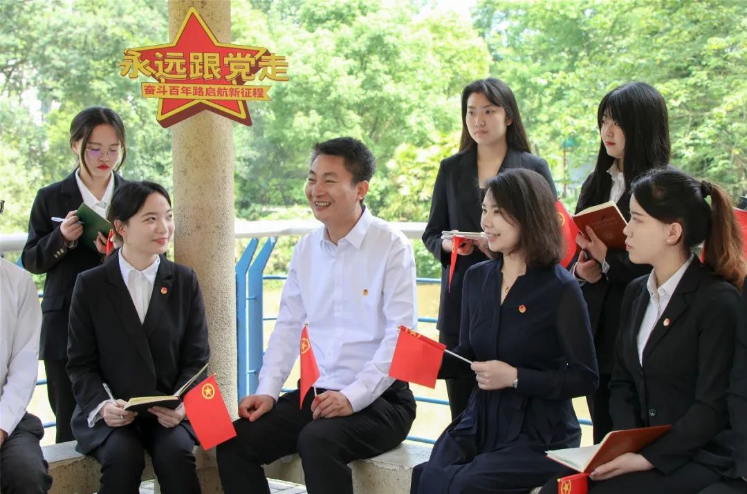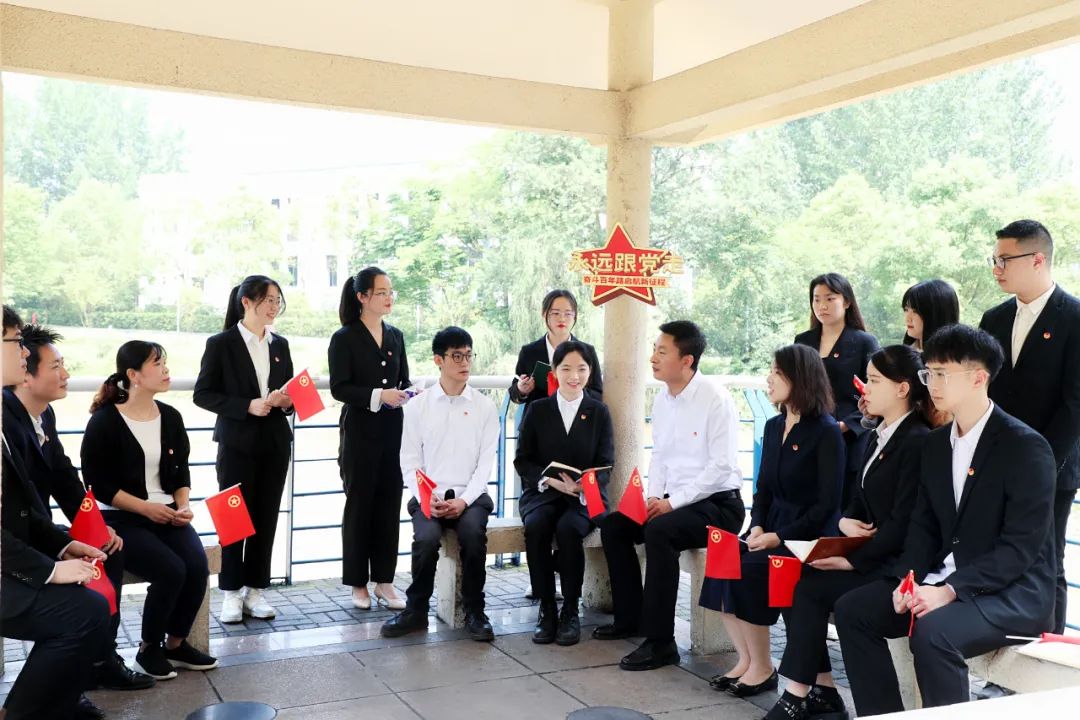 在大会直播结束后,学校副校长郭建礼与青年师生代表第一时间来到图书馆湖畔开展学习心得交流会,大家围绕习近平总书记的重要讲话精神,结合自身的工作和学习进行了交流发言。学生代表们表示他们有信心练就过硬本领,紧跟党的步伐,担当作为、建功立业;人文学院思政教师代表说到作为一名青年教育工作者深感责任在肩,定会践行好为党育人的使命。最后副校长郭建礼跟青年师生们分享自己的观后感悟,并提出了两点希望,一是要主动学习党领导下中国青年运动的百年历程,紧密地团结在以习近平同志为核心的党中央周围, 坚定理想信念,坚守“党有号召,团有行动”的政治自觉和行动自觉; 二是胸怀国之大志,承载浓浓家国情怀,喊出青春献给党的响亮号角,在实现中国梦的这场接力赛中奋勇争先。
