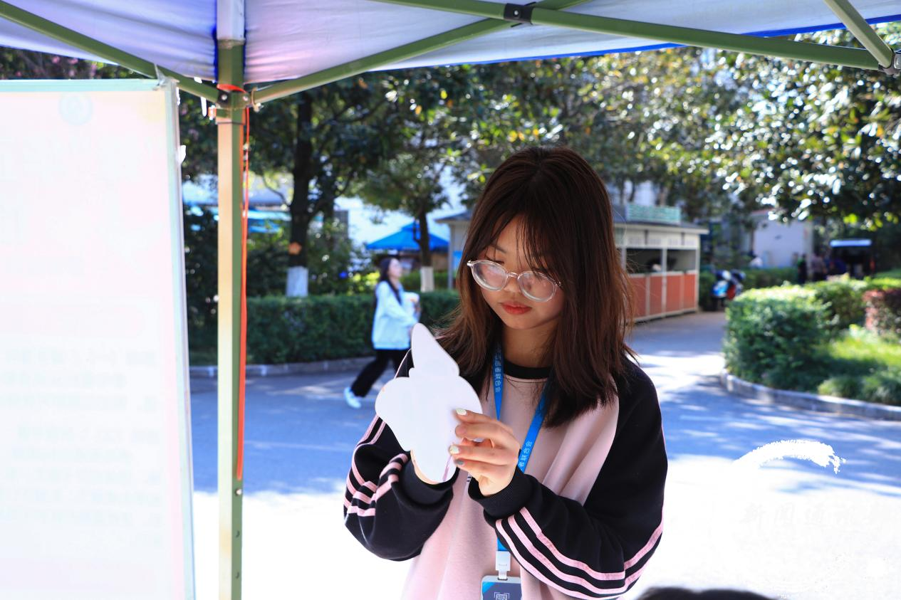 做团扇,留爱心,真情善意现行动。活动现场,同学们将心中的美好祝愿画在团扇上,完成后可自行带走或留下,待活动结束后,表达美好祝愿的团扇会送到医护人员和儿科病房的小朋友们手中。