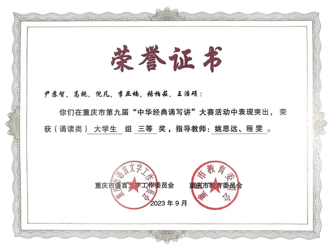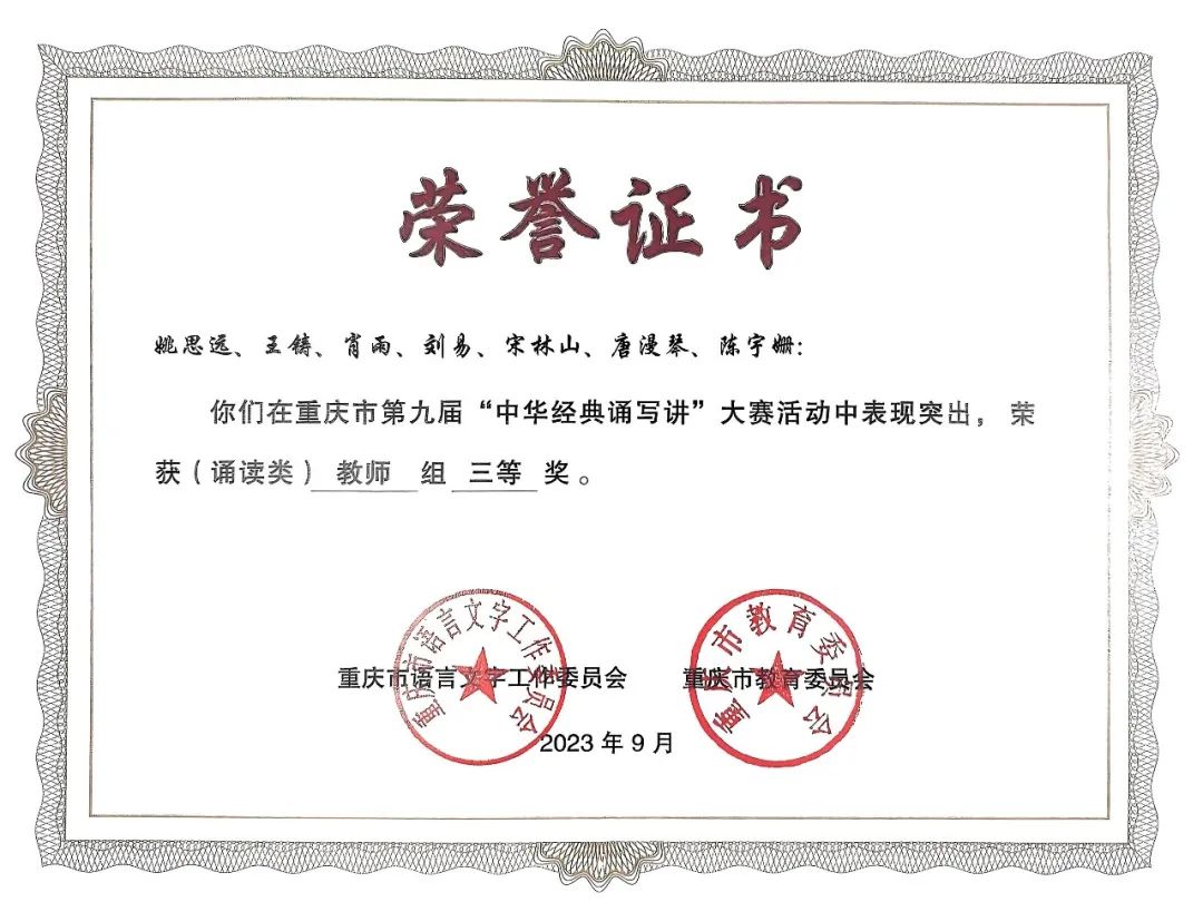 为贯彻落实学习宣传党的二十大精神,加大国家通用语言文字推广力度,深化全民阅读,传承弘扬中华优秀语言文化,推进文化自信自强,重庆市教育委员会、重庆市语言文字工作委员会共同组织开展了重庆市第九届“中华经典诵写讲”系列比赛。