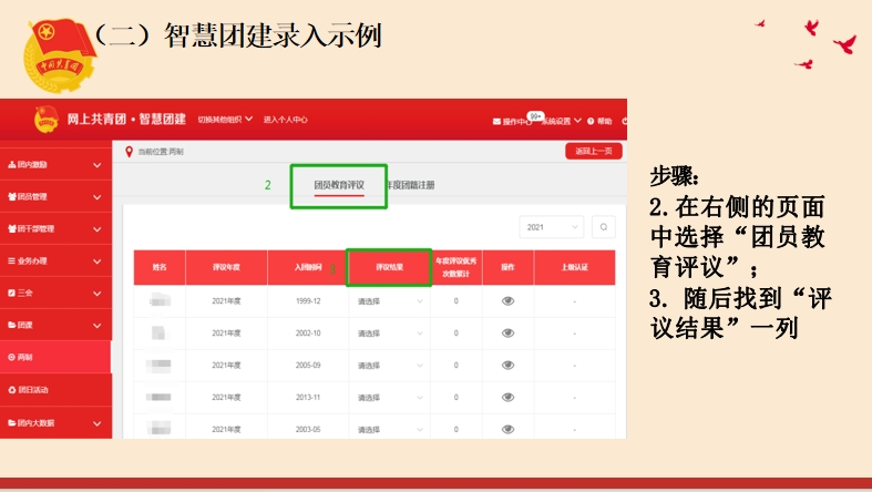 本次培训会主要围绕团员和青年主题教育专题组织生活会、团组织的基层建设两方面展开,一是对各团支部开展的团员和青年主题教育专题组织生活会进行明确要求,团支部要高度重视,精心组织,坚决杜绝弄虚作假、装样子、走过场等现象,切实维护团内组织生活的严肃性。专题组织生活会可与主题团日等结合开展,增强现场感、仪式感、庄重感。二是针对在团组织基层组织建设的问题对智慧团建平台中的教育实践及数据、干部管理、权限管理等栏目的功能进行了细致的讲解并进行操作示范。