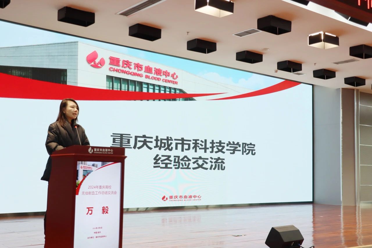 为更好的总结工作经验,共同探讨新时期高校无偿献血工作的好方法、好思路、好经验,提升献血服务质量,1月9日下午,2024年重庆高校无偿献血工作总结交流会于重庆市血液中心顺利举行。重庆城市科技学院团委书记万毅参加交流活动并应邀作经验分享。