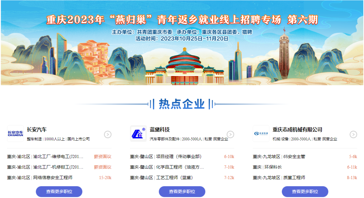 2023年重庆市“燕归巢”青年返乡就业招聘
