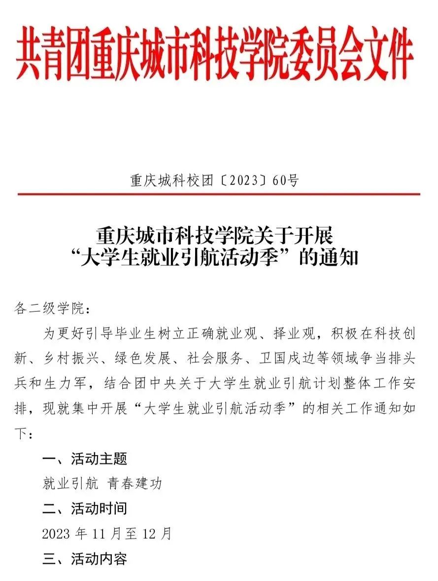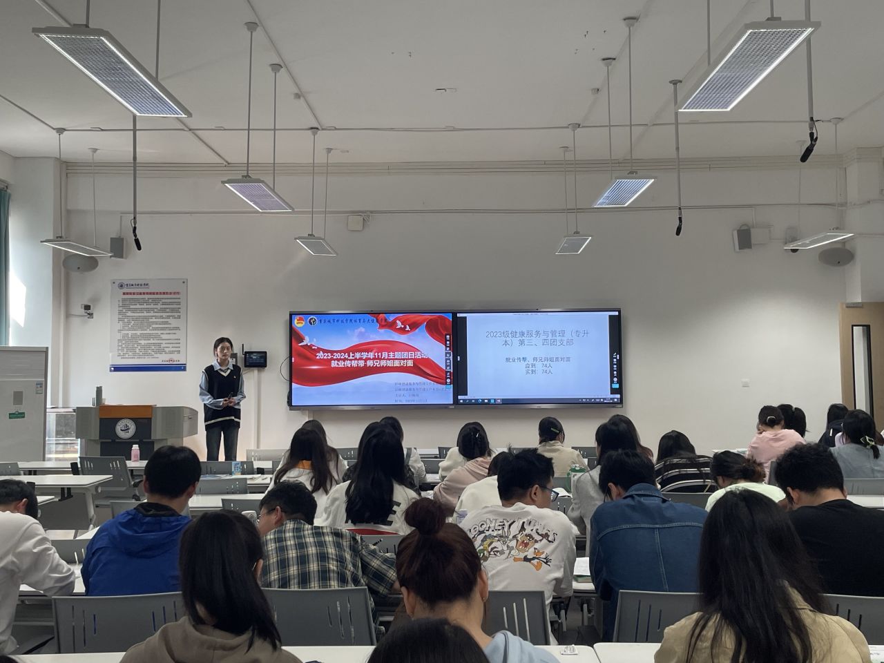 为更好引导毕业生树立正确就业观、择业观,积极在科技创新、乡村振兴、绿色发展、社会服务、卫国戍边等领域争当排头兵和生力军,结合团中央关于大学生就业引航计划整体工作安排,2023年11月,我校团委组织全校团支部开展“就业传帮带·师兄师姐面对面”主题团日活动。