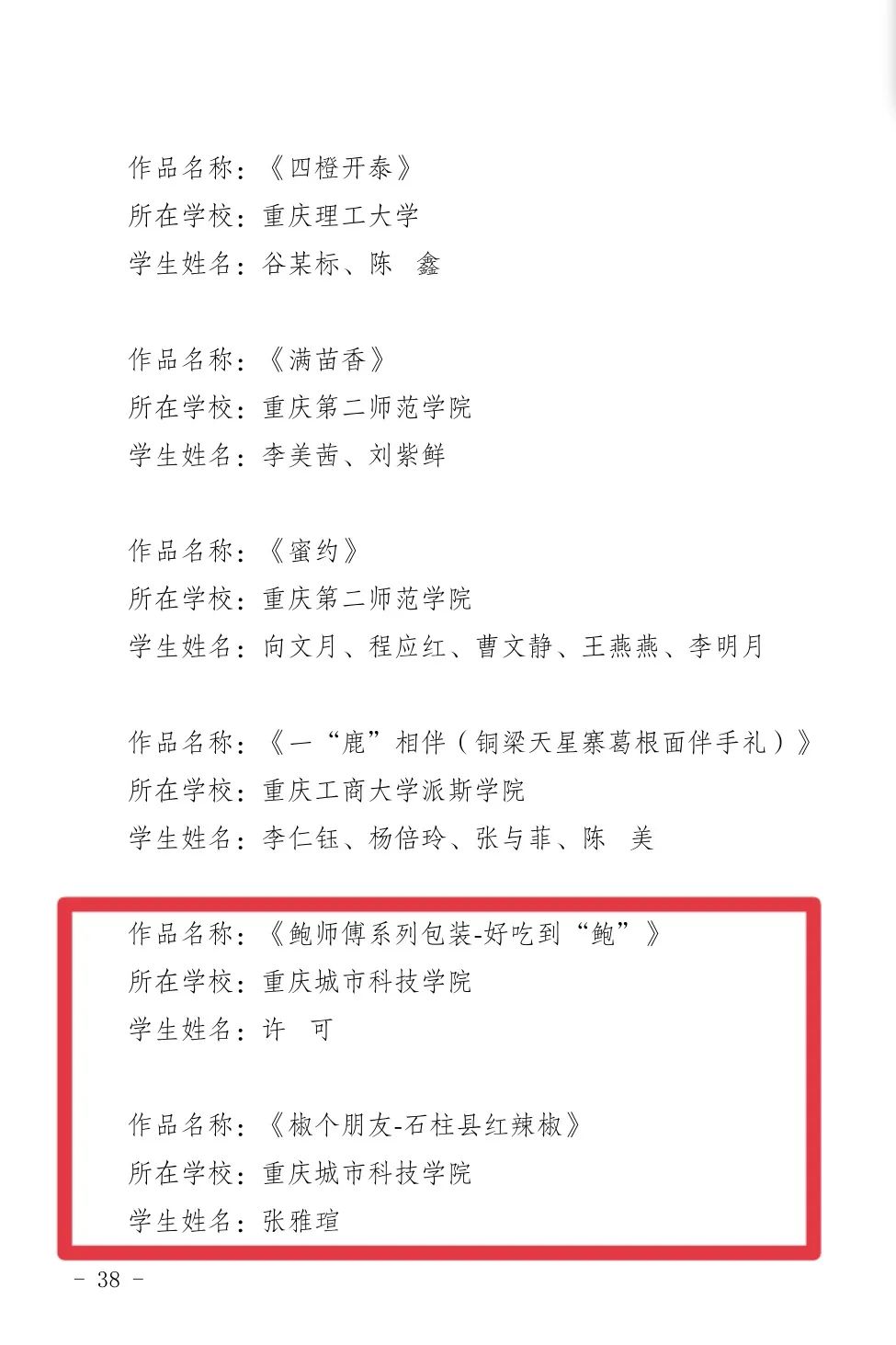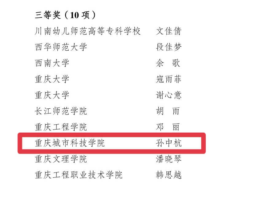2022年10月13日,共青团重庆市委公布《关于第 41 届“动感地带”川渝“校园之春”文化艺术体育活动获奖情况的通报》,为迎接“喜迎二十大、永远跟党走、奋进新征程”第 41 届“动感地带”川渝“校园之春”文化艺术体育活动,我校团委积极组织参与本次文化艺术体育活动,在大学生书法大赛、农产品包装及品牌 logo 设计大赛、微团课大赛、大学生志愿服务项目设计大赛等各类比赛中取得卓越成果。