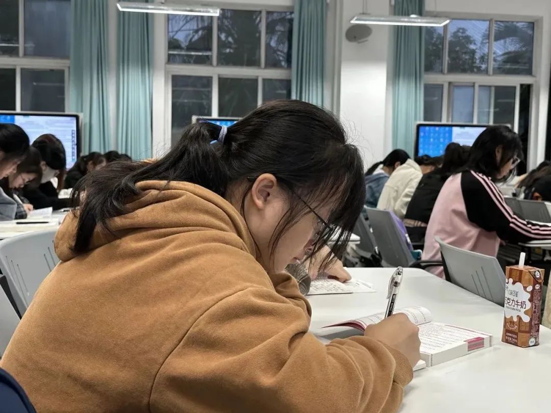 早自习上同学们专心致志地预习手中的课本,大家对大学的课堂 ,对未来四年的大学的学习充满了希望和憧憬。