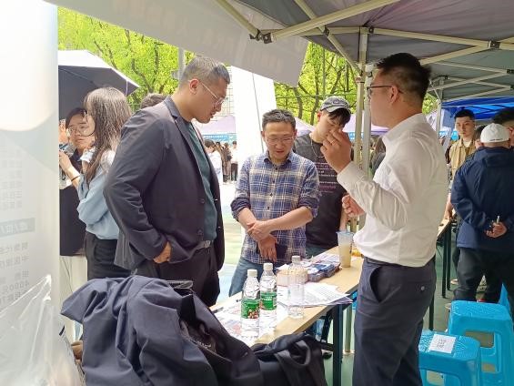 招聘会现场,学院领导及毕业年级辅导员走询用人单位,沟通了毕业生就业去向、单位的实践学习方案、招聘要求等问题,并结合学院毕业生的具体情况和求职需求与用人单位深入交流。李书记表示,校企合作是毕业生与用人单位双向交流的平台保障,有利于推进企业发展,也有利于促进毕业生顺利就业,实现社会价值。辅导员们也积极询问毕业生的就业准备情况,鼓励同学们充满信心,认真准备,顺利走好职场第一步。