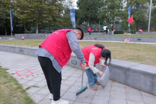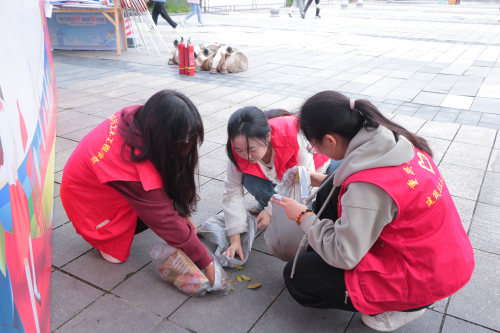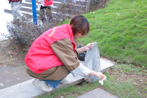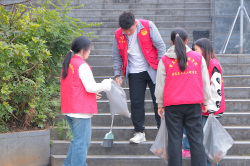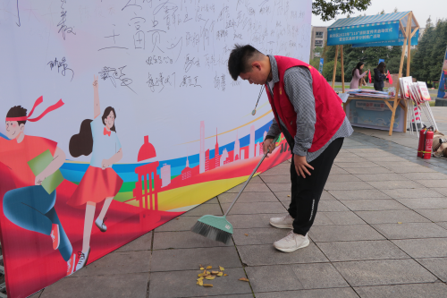 活动伊始,我院外联实践中心社工方向骨干组织志愿者们在图书馆前进行集合签到,并进行工作分配,领取各自清洁工具。志愿者们分布在各处,对落叶与垃圾进行清扫和捡拾。在志愿者们的互相配合之下,图书馆前广场的落叶与垃圾被一扫而光,恢复了往日整洁的模样。