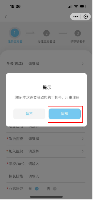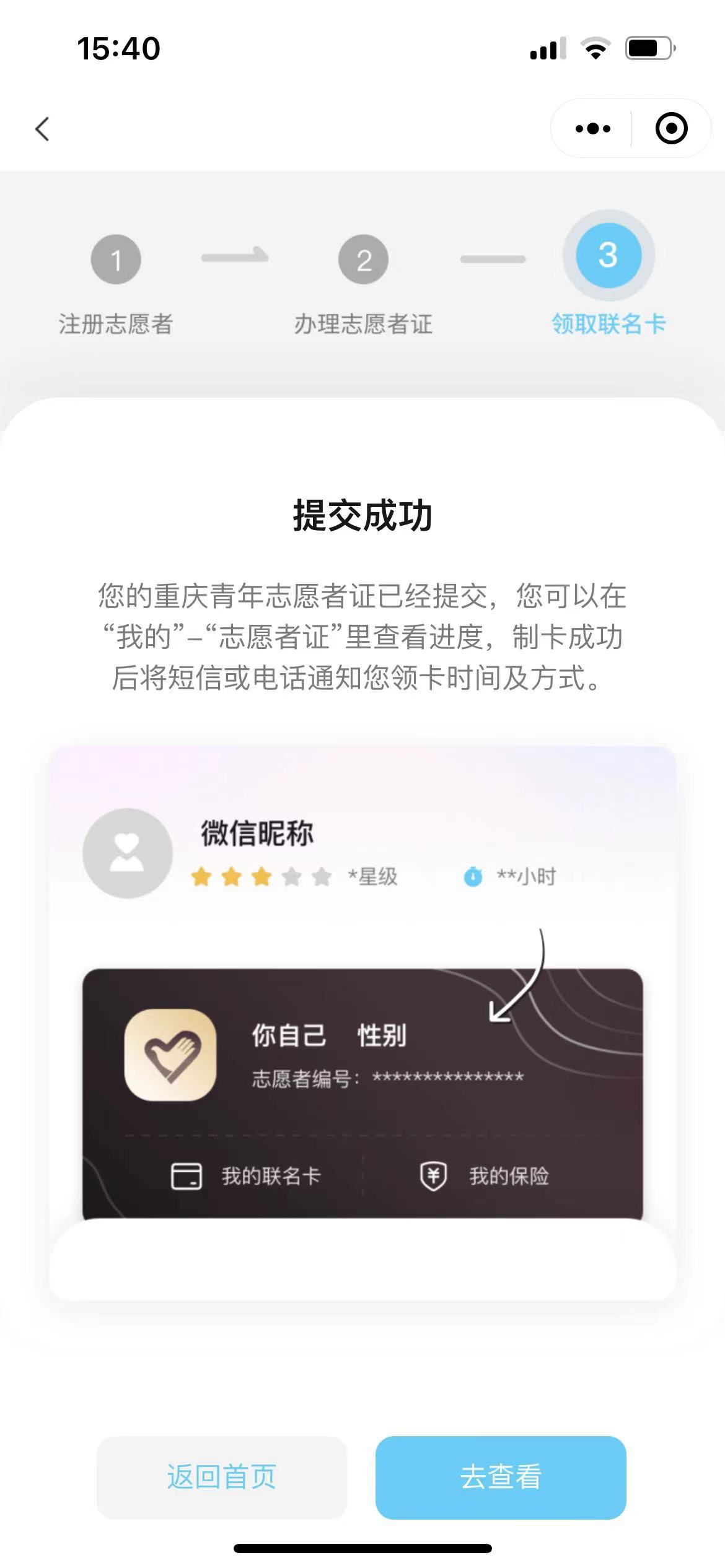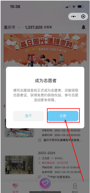 步骤一:通过微信搜索“志愿山城”小程序 步骤二:进入小程序后,弹窗弹出点击注册 步骤三:根据提示点击同意获取手机号 步骤四:填写基本信息(注意加入组织一定要选重庆城市科技学院建筑与土木工程学院志愿服务队) 步骤五:确认协议并提交(银行选取无固定要求) 最后注册成功界面