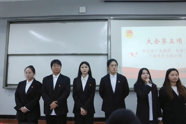 会议伊始,全体参会人员迎团旗,唱共青团团歌,歌声嘹亮,铿锵有力,尽展团学青年的朝气蓬勃。