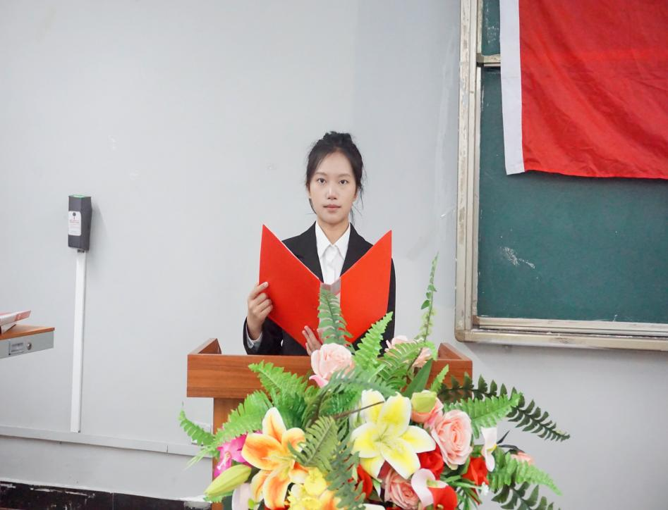 临近会议尾声,由党总支书记、副院长冯鑫上台致闭幕词,他提出希望同学们志存高远、不忘初心、砥砺前行,脚踏实地跟党走,朝着未来不断奋进。