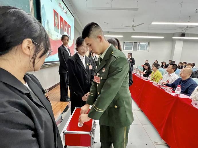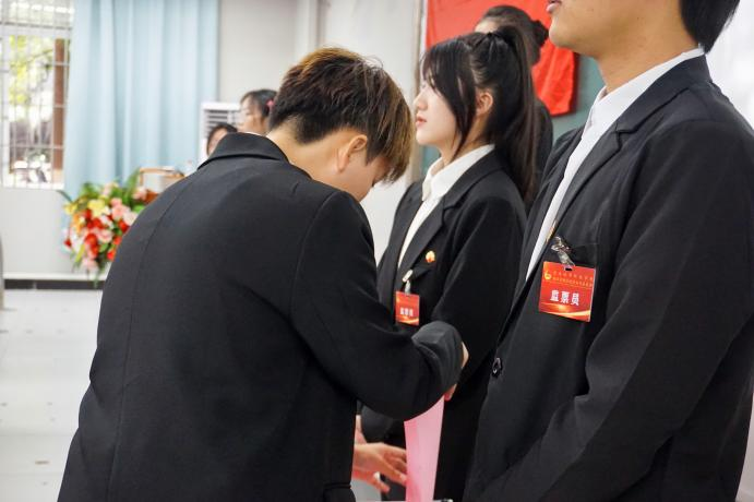 接下来全体代表通过不记名投票选举的方式,秉承“公开、公平、公正”的选举原则,选举出了新一届学生会主席团成员,他们分别是陈利萍、李沛延、周丹。