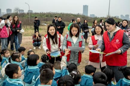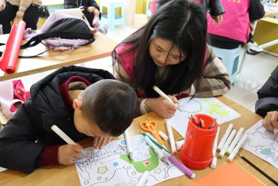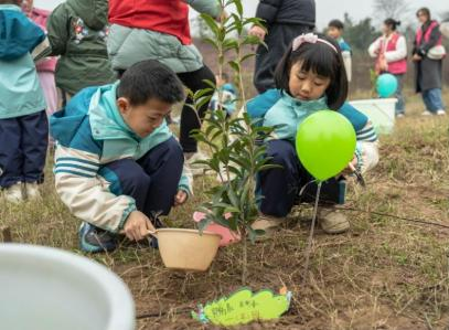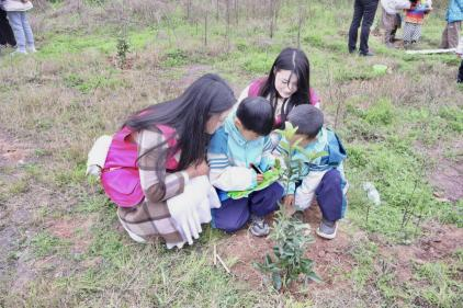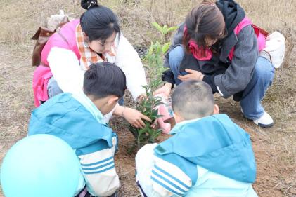 随后,志愿者和小朋友们同力协契,分工合作,一起栽下生机勃勃的树苗。植一抹绿色,溢一片春光。志愿者与小朋友们一同在心愿牌上写下自己的小小心愿,希望小树苗们在四季流转里陪伴青年朋友茁壮成长。