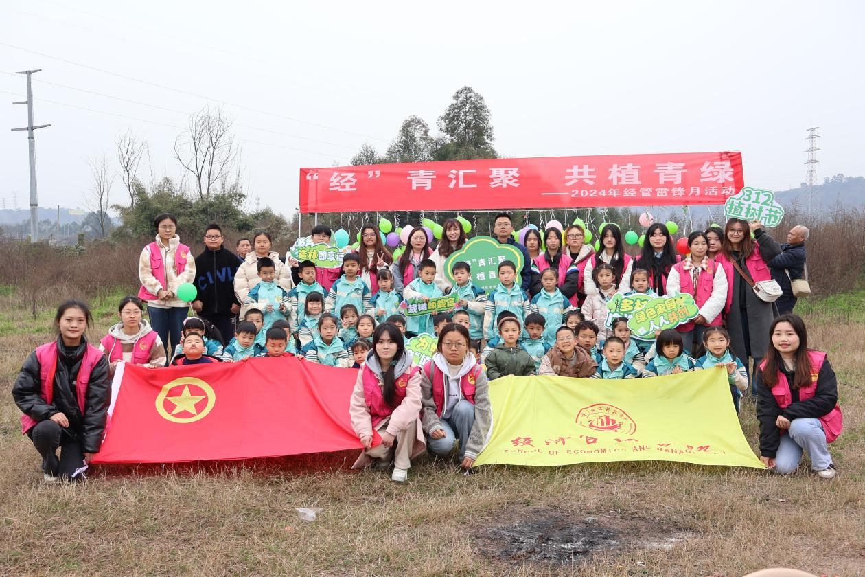 大家一起与栽种的小树苗合影留念,本次植树活动也圆满结束。“植”的是希望,“树”的是精神,本次“‘经’青汇聚,共植青绿”实践活动不仅激发了青少年们爱林、造林的热情,同时经管志愿者们也为国家的“小树苗们”树立了良好榜样。