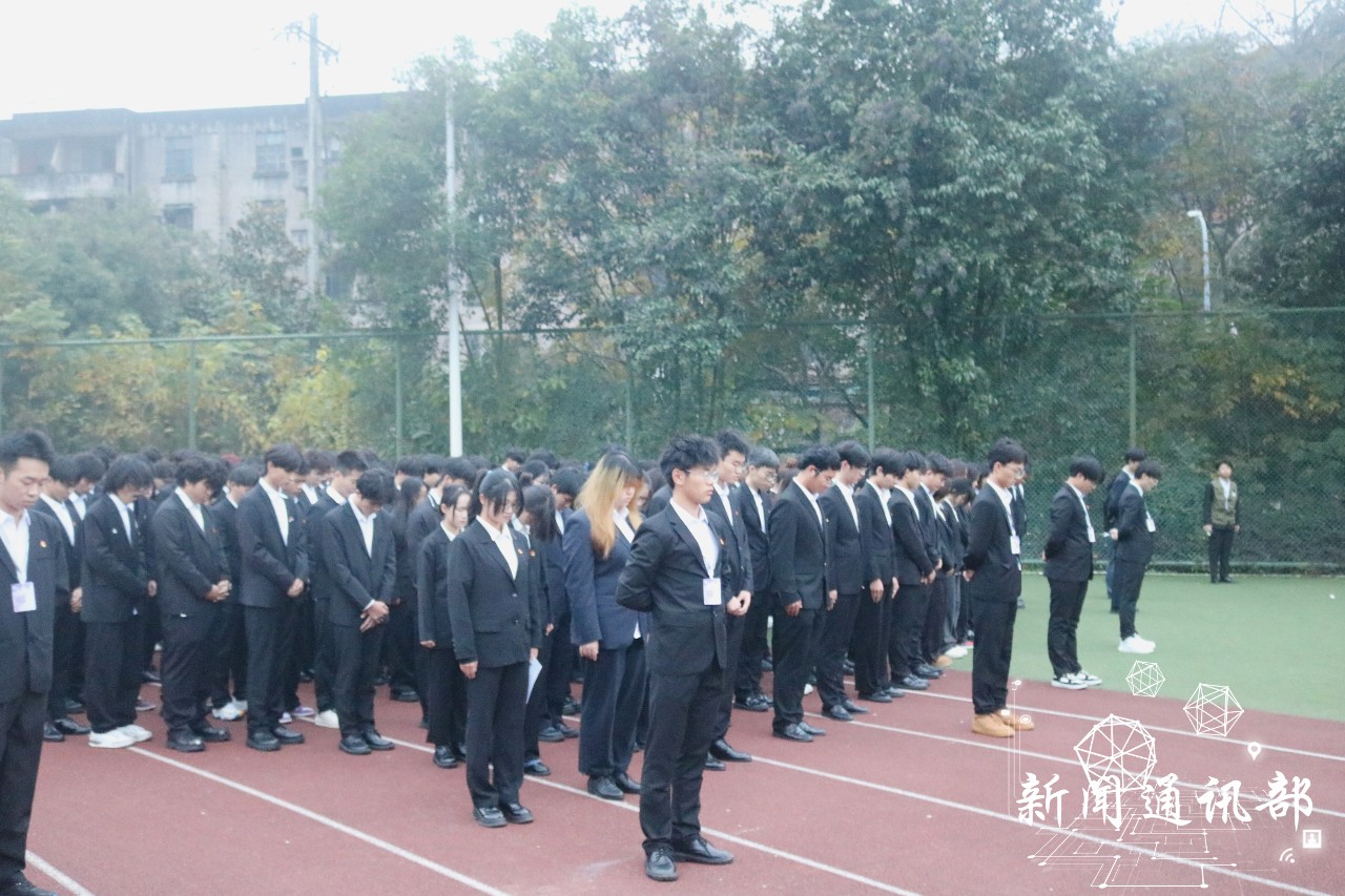 12月13日7:30,人工智能与大数据学院于主足球场举行国家公祭日升旗仪式。本次仪式由学生第一党支部书记欧高宏,党建指导老师邱发发,团学指导老师黄圆圆出席,各学院代表及党建工作者,青马班成员,团学成员参加,学生会主持部刘奕宏主持。