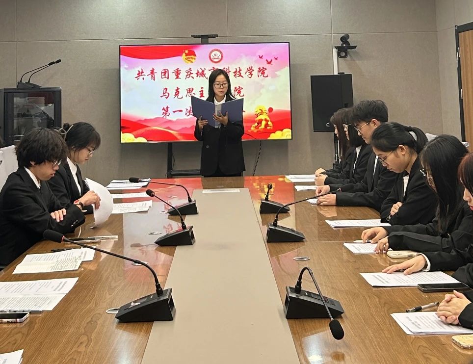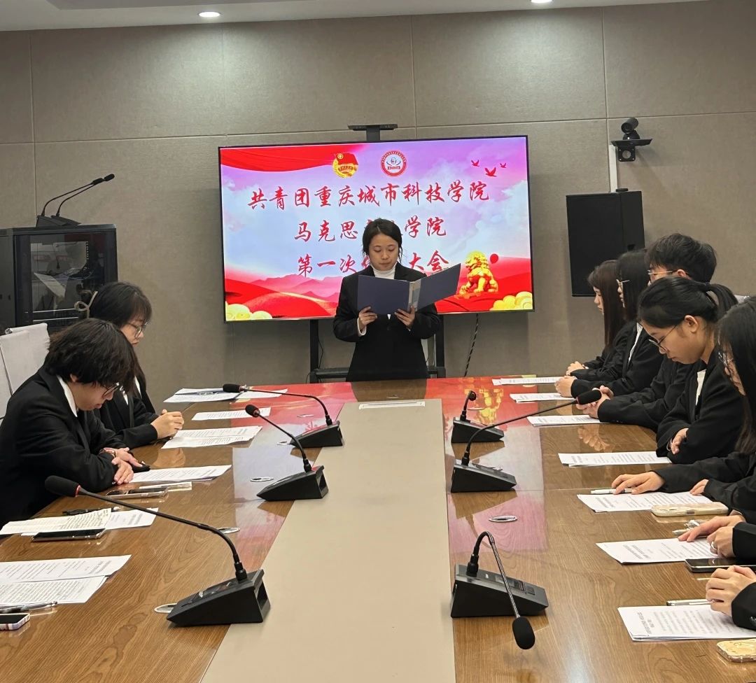 马克思主义学院团学指导老师王乙岚宣读了学院党总支关于同意召开共青团重庆城市科技学院马克思主义学院第一次代表大会的批复。