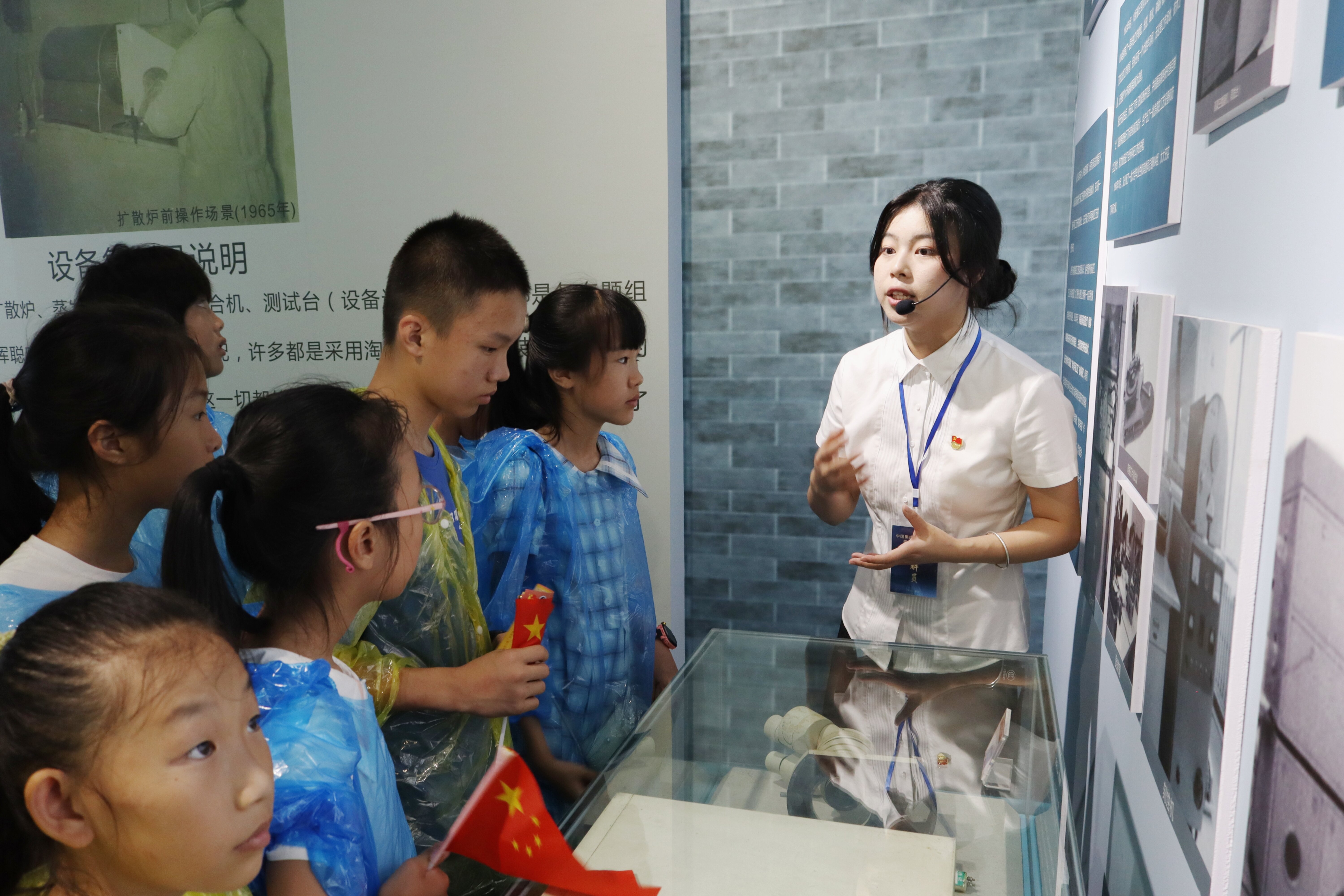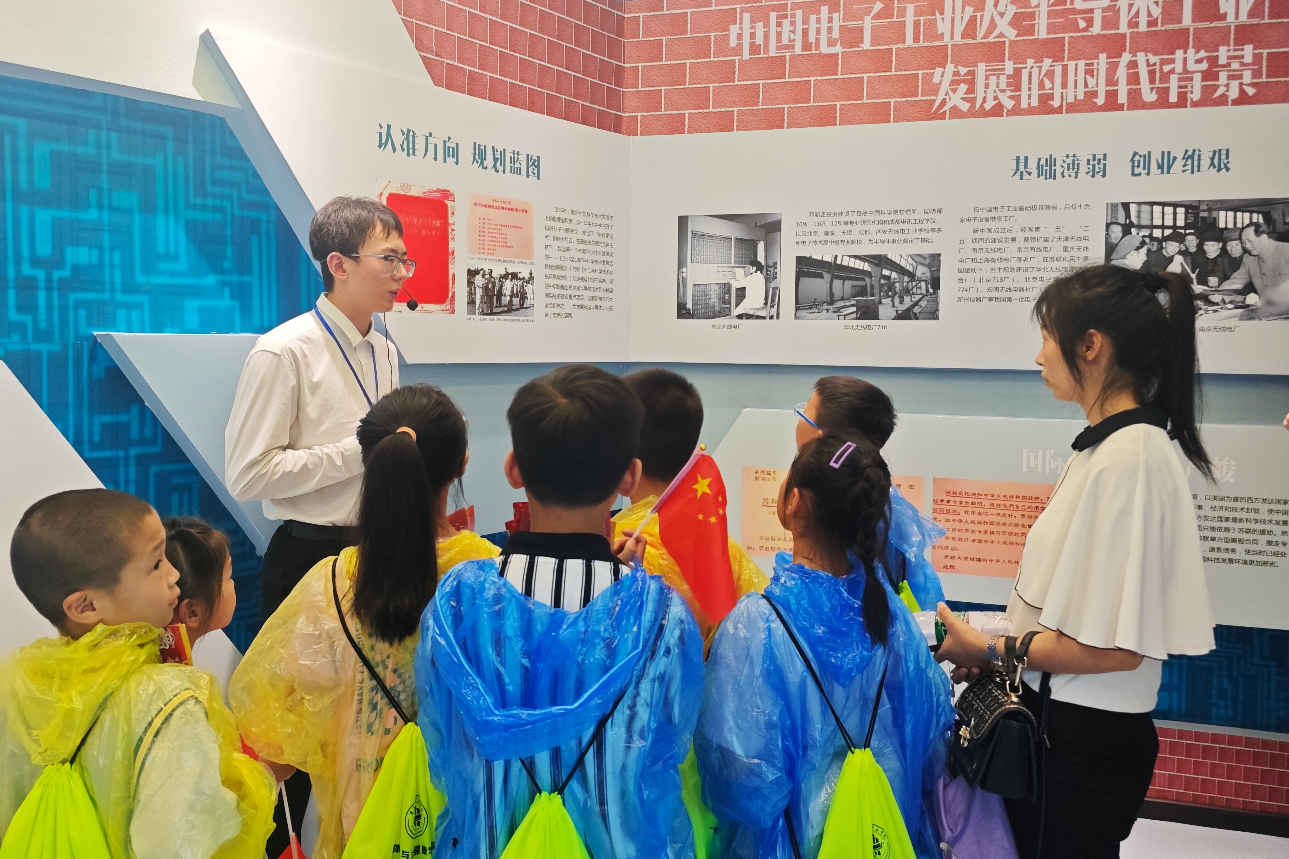 图2 讲解员为小朋友讲解集成电路创业史陈列馆