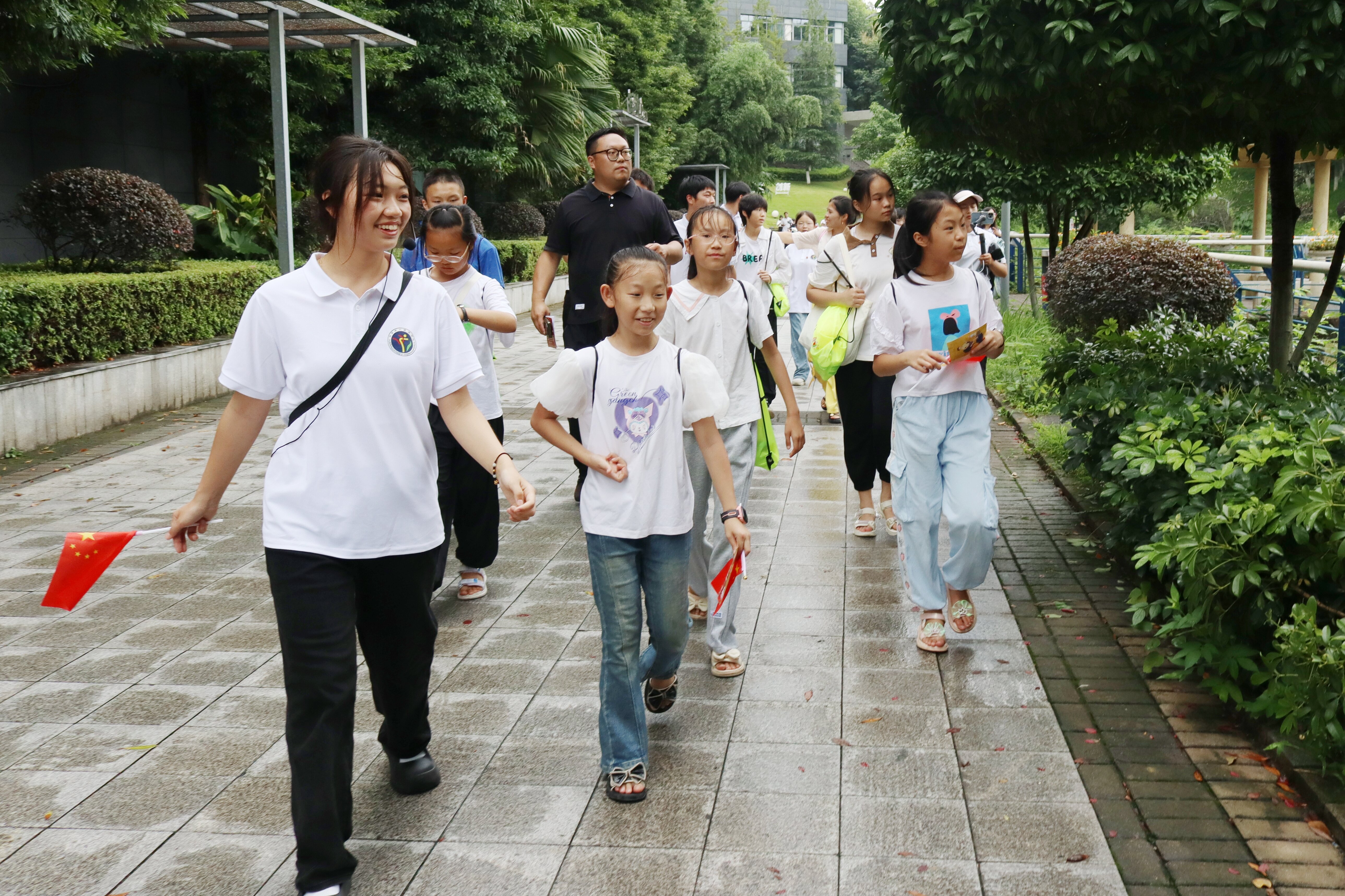 活动当天,朱沱镇福龙桥社区青少年之家的小朋友和家长们坐上校车来到重庆城市科技学院。志愿者特地为小朋友们准备了丰厚的物资包,包中备有校园地图、小红旗、勋章、零食、矿泉水等。随后,小朋友和家长们跟随志愿者参观了学校教学楼、集成电路史陈列馆、图书馆、红“芯”文化主题广场等特色点位,使小朋友们通过这次活动对大学的学习环境和科研氛围有了更深刻的认识。