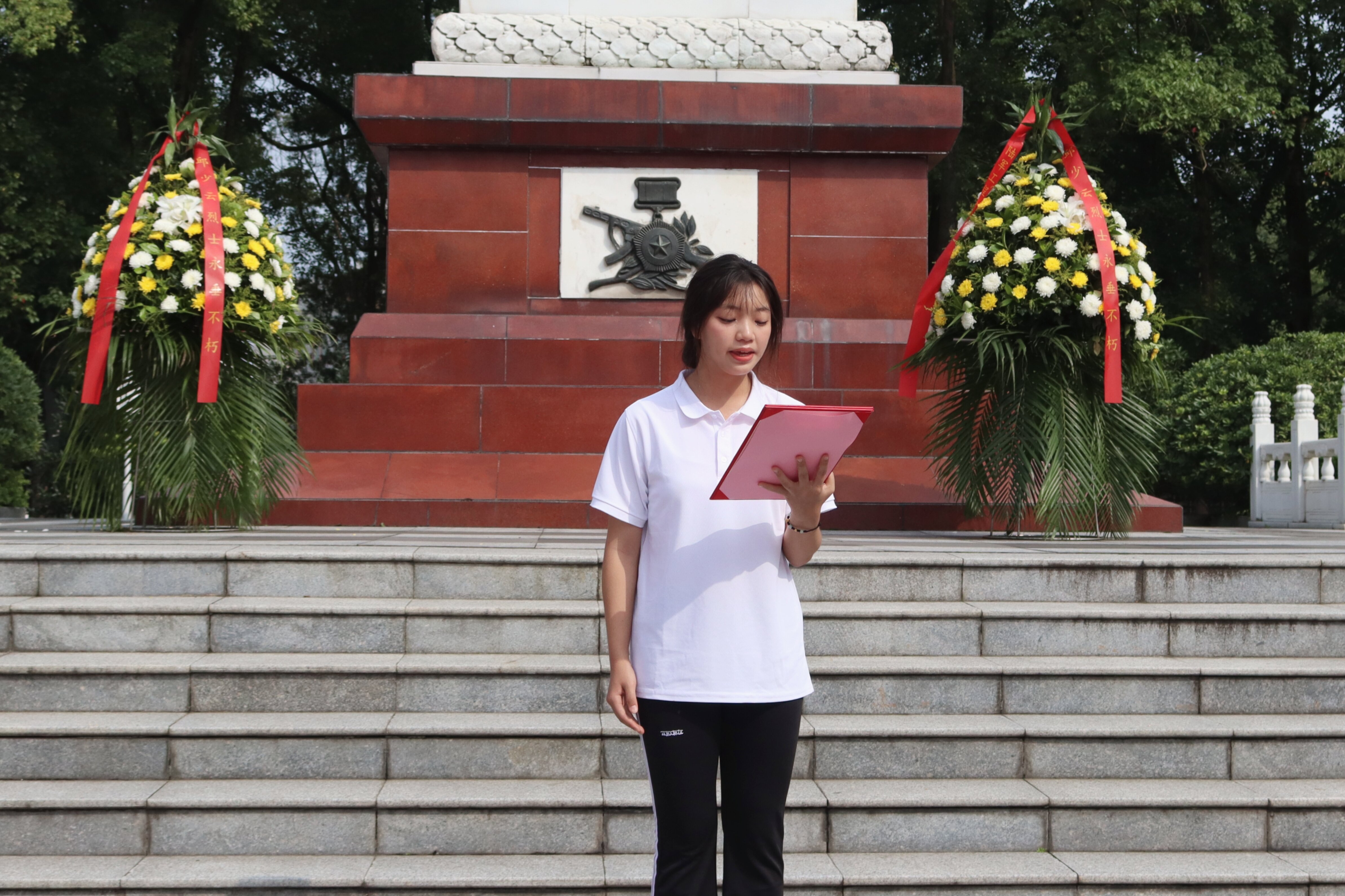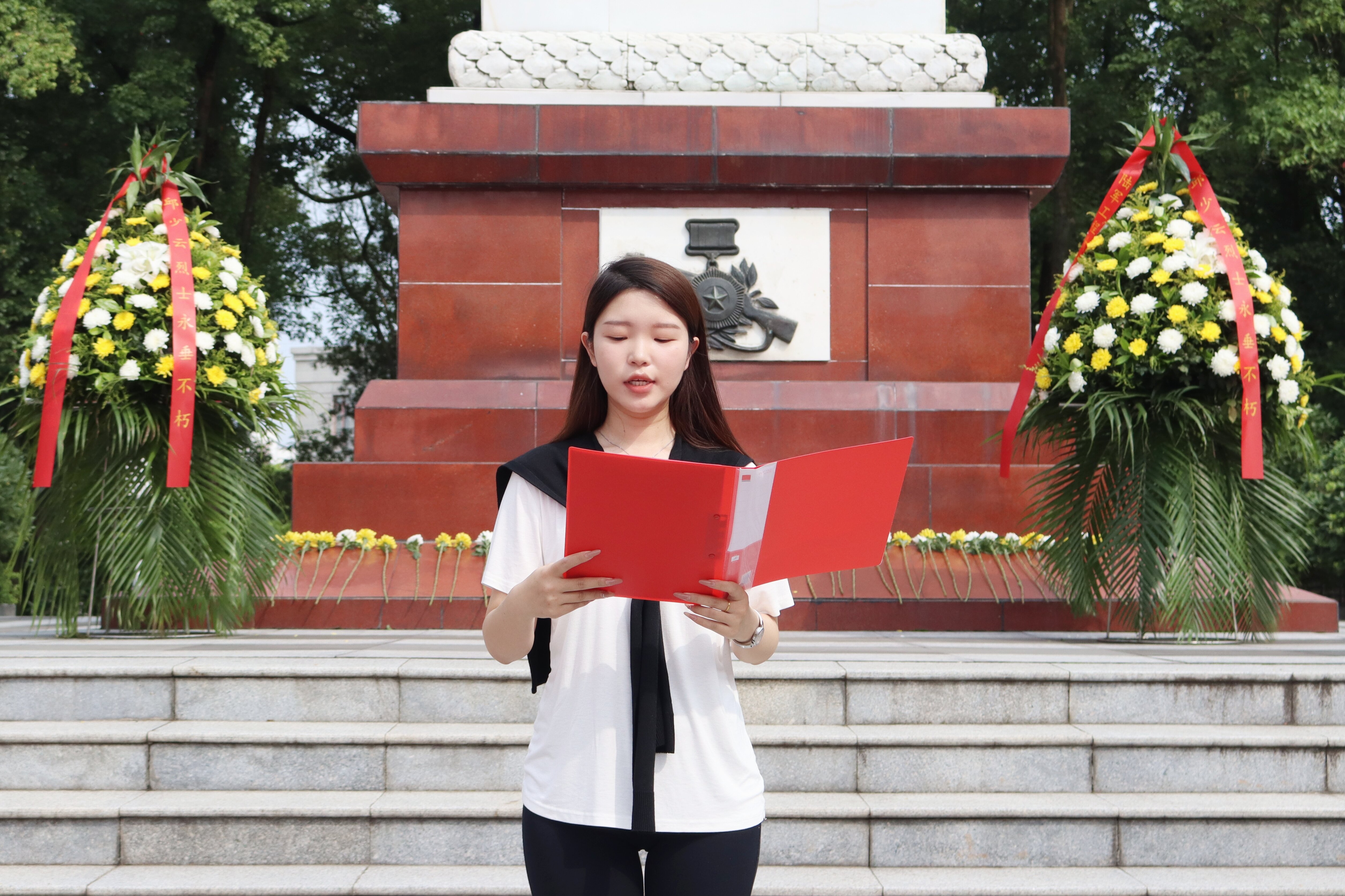 活动开始,全体师生在邱少云烈士纪念碑前集合,现场庄严肃穆。随着主持人的宣布,活动正式拉开序幕。全体人员肃立,迎国旗、奏唱国歌。随后,志愿者代表张丹丹深情讲述了邱少云烈士的生平事迹和感人故事,让在场的每一个人都深受触动。