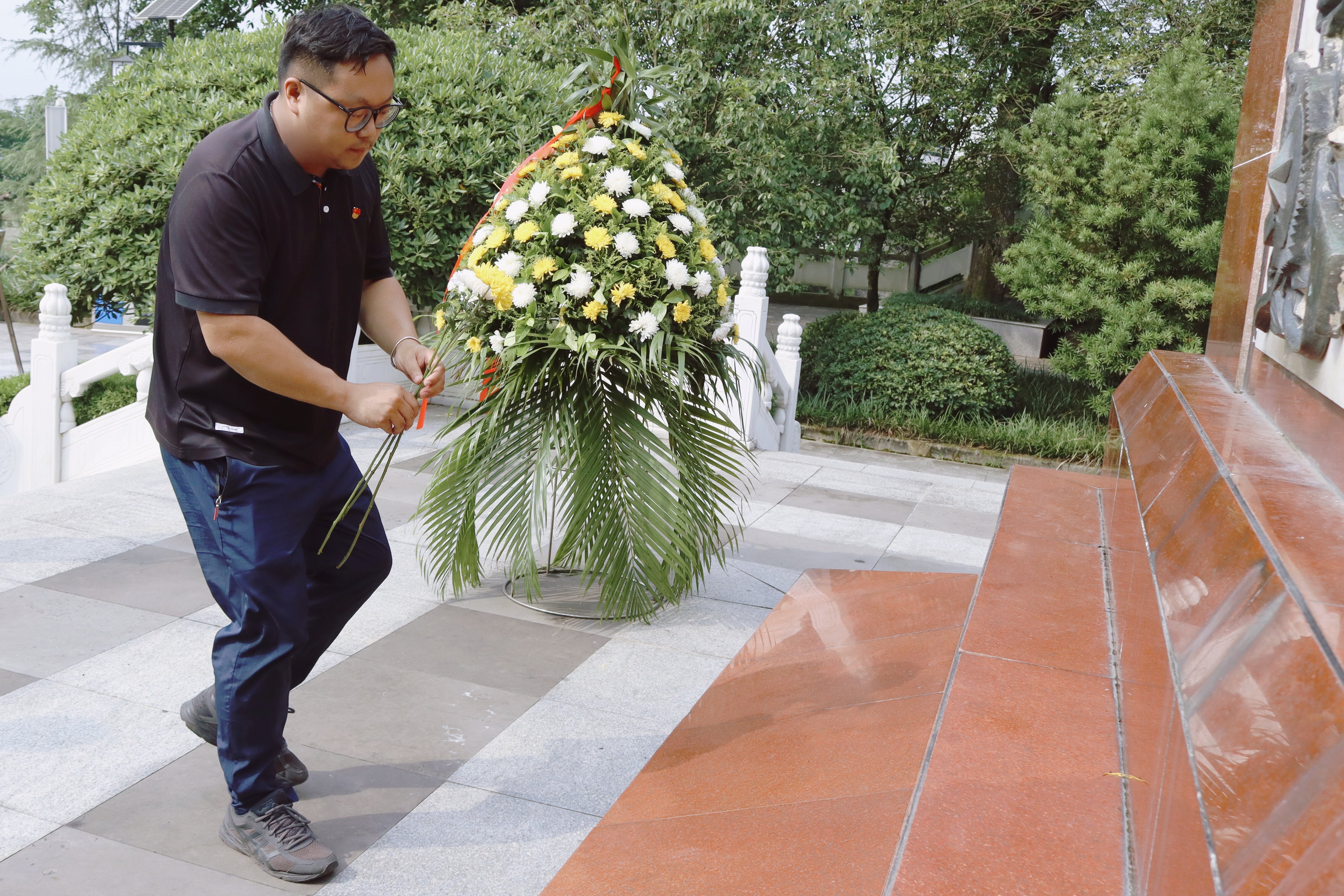 在庄严的纪念碑前,师生们共同默哀一分钟,表达对英烈的深切哀悼。紧接着,师生们向烈士献上了鲜花,表达了对英雄们的崇高敬意和无限怀念。随后,由体育与大健康学院团学指导老师蒲鸿雁为师生们上了一堂生动的微团课,进一步加深了志愿者们对爱国主义精神的理解。