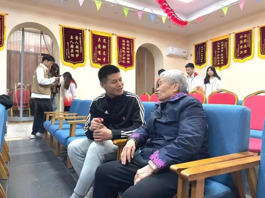 10月21日下午,体育与大健康学院志愿者前往“夕阳之家”敬老院开展志愿服务活动。此次志愿服务活动由团总支书记王胜蓝、党建工作站指导老师彭俊豪、团学指导老师张营以及辅导员刘琲带队。