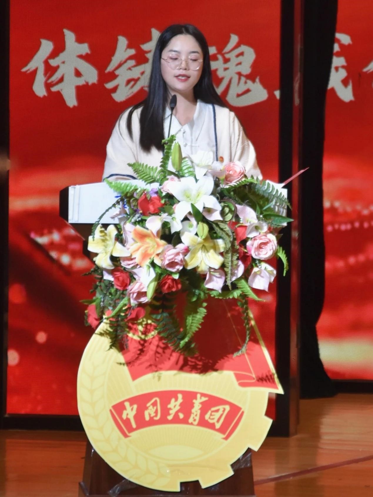 重庆城市科技学院校团委指导老师张爽宣读《关于表彰体育与大健康学院第一届团总支·学生会优秀部门、优秀骨干、优秀工作人员、 突出贡献个人的决定》。
