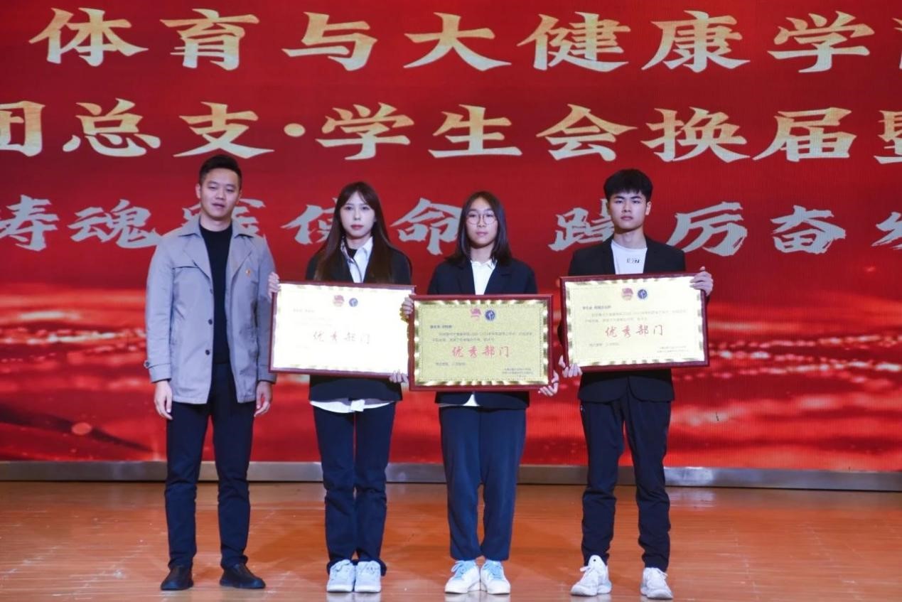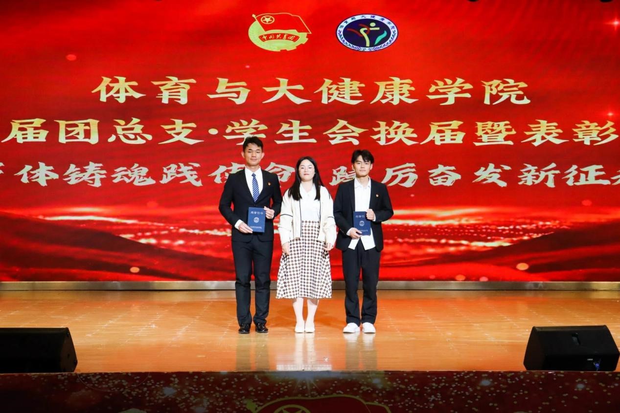 体院团总支书王胜蓝、团学指导老师张营为第一届优秀工作人员代表颁奖
