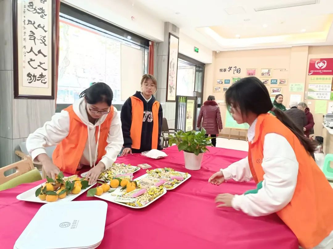 为顺利开展此次活动,体院团学的志愿者协助服务中心的工作人布置活动现场。黄色的马甲是青年阳光热情的象征。团学志愿者身着马甲积极地投入志愿活动中,搬桌椅,铺桌布,摆果盘,协助长者入座等。