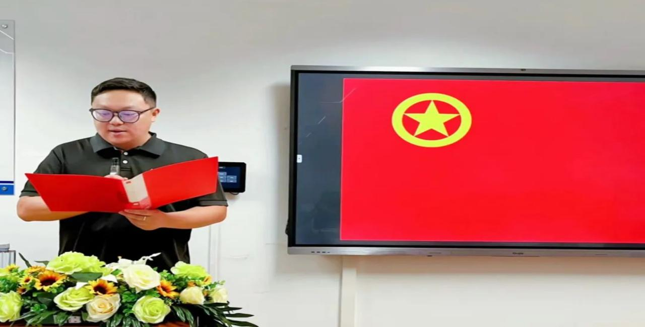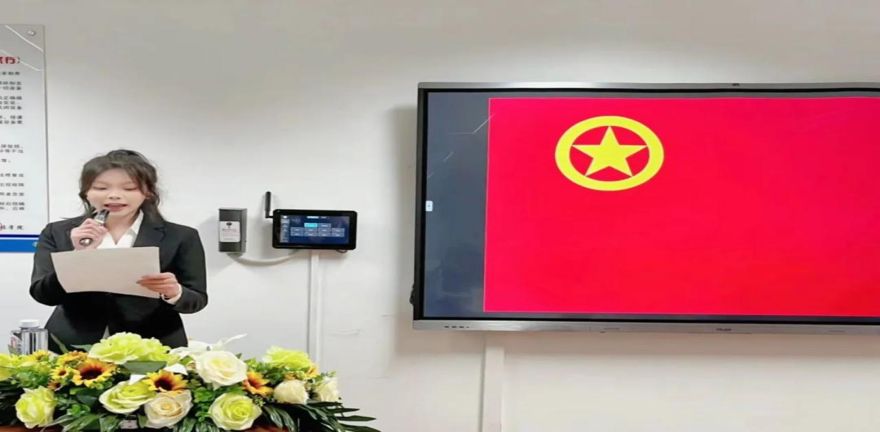 2023年下半年(第一期)“入团积极分子培训班”学员代表带领本期入团积极分子进行宣誓。