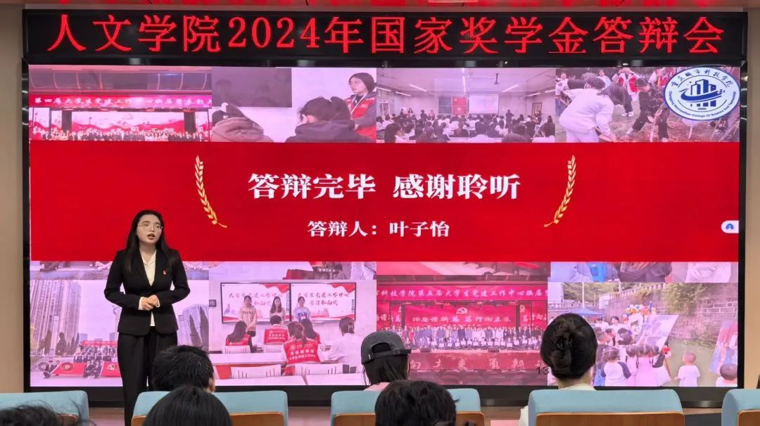 本次答辩会由人文学院党总支组织委员徐杰、第一党支部书记郎月婷、奖助指导老师范昊、党建指导老师陈艳玲担任评委,各年级学生代表来到答辩会现场观摩学习。经个人申请、辅导员严格筛选推荐,学院共有9名学生参加本次国家奖学金答辩。根据答辩流程要求,参评学生依次上台进行3-5分钟的PPT展示及答辩,他们分别从学业成绩、政治思想、社会实践、比赛经历等方面进行个人展示,评委老师对参评学生进行提问。各参评学生均展现出了良好的精神风貌,多层次全方位展示出取得的优异成绩,体现了“厚德、博学、求是、创新”优秀人文学子精神,起到了榜样示范作用。