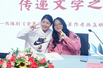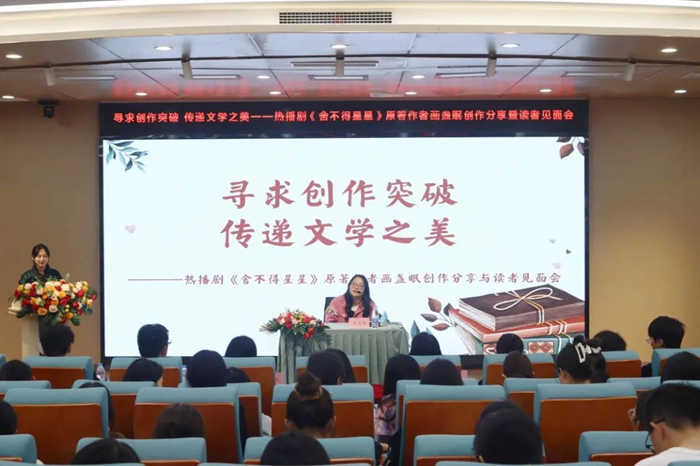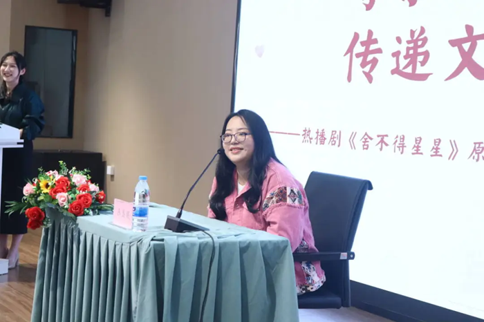 谈到最近的热播剧《舍不得星星》,画盏眠女士表示,当时自己正值毕业季,感受到分离是人生的常态,而拥有一个青梅竹马是大多数人的渴望,正是怀着这份渴望写下了这部著作。生活中的小事往往蕴含着大道理,只要用心去感受、去挖掘,就能找到创作的灵感。画盏眠作家的分享深入浅出,既有理论高度,又贴近创作实际,让现场学生受益匪浅。