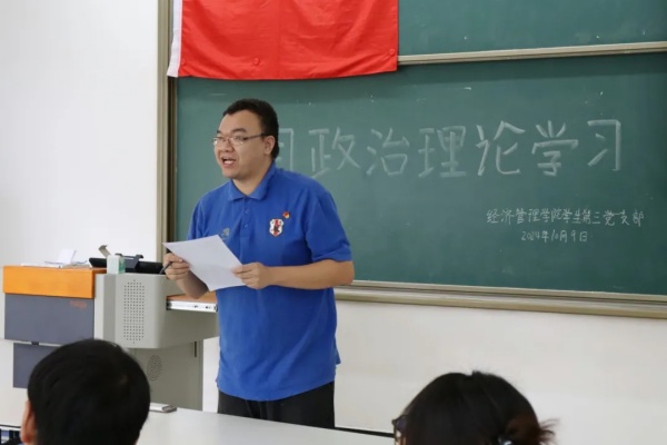 为深入学习宣传贯彻习近平总书记关于坚持和完善人民代表大会制度的重要思想,围绕发展全过程人民民主,坚持好、完善好、运行好人民代表大会制度,10月9日中午,经济管理学院学生第三党支部于经管学院大楼501教室开展了以“启航新征程,共筑中国梦”为主题的政治理论学习。支部书记周政霖及支部全体党员同志参加,本次会议由梁先春同志领学。