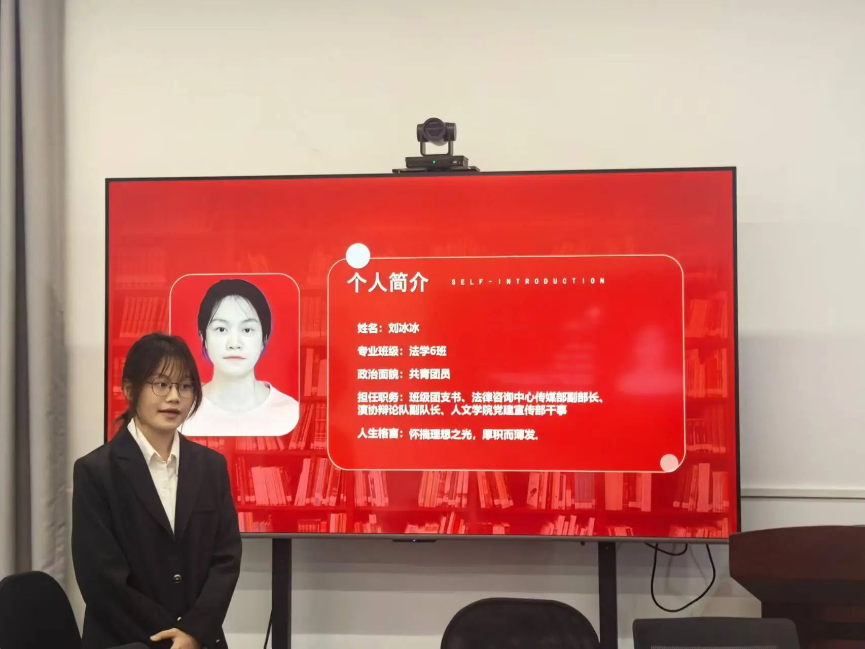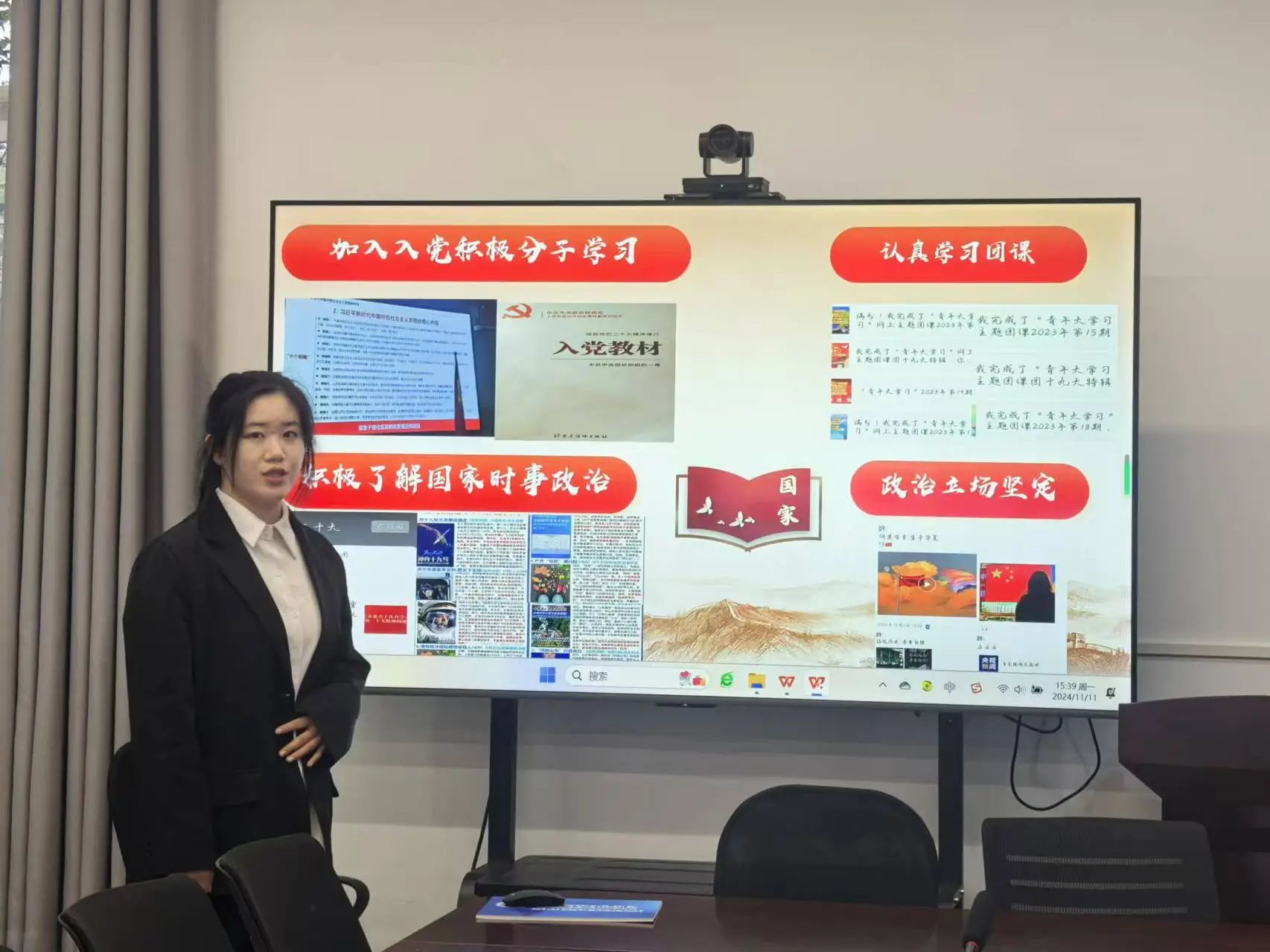 本次答辩大会由李鑫主持,日常组组长郎月婷、团学组组长袁超、第二党支部书记杨帆、第三党支部书记李建霞、党建工作指导老师周霞等5名教师担任评委,11位候选人参与答辩。在答辩环节,同学们立足自身优势,从思想政治、荣誉奖项、科研竞赛、学生工作、文体活动、社会实践和志愿服务等多角度呈现了在大学生活中的成长与收获,全方位展示了我院优秀学子的风采。