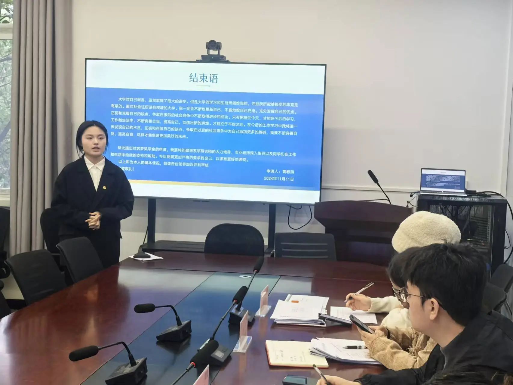根据学校《关于开展2024年度筑梦奖学金评选工作的通知》安排,依照《关于实施中国教育发展基金会2024年度筑梦奖学金项目的通知》和《重庆城市科技学院本科生奖学金评定实施细则》等相关要求,我院于2024年11月11日在人文学院223会议室举行2024年度筑梦奖学金学生答辩会。