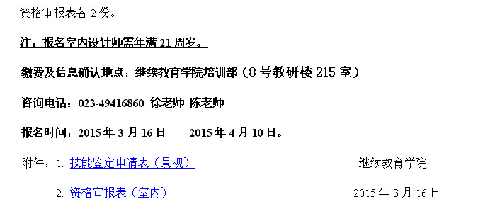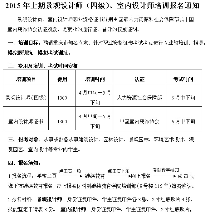 2015年上期景观设计师(四级)、室内设计师培训报名通知