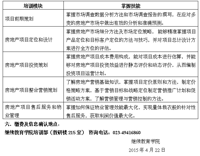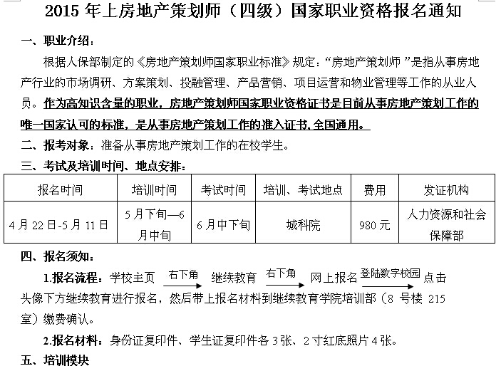 2015年上房地产策划师(四级)国家职业资格培训报名通知